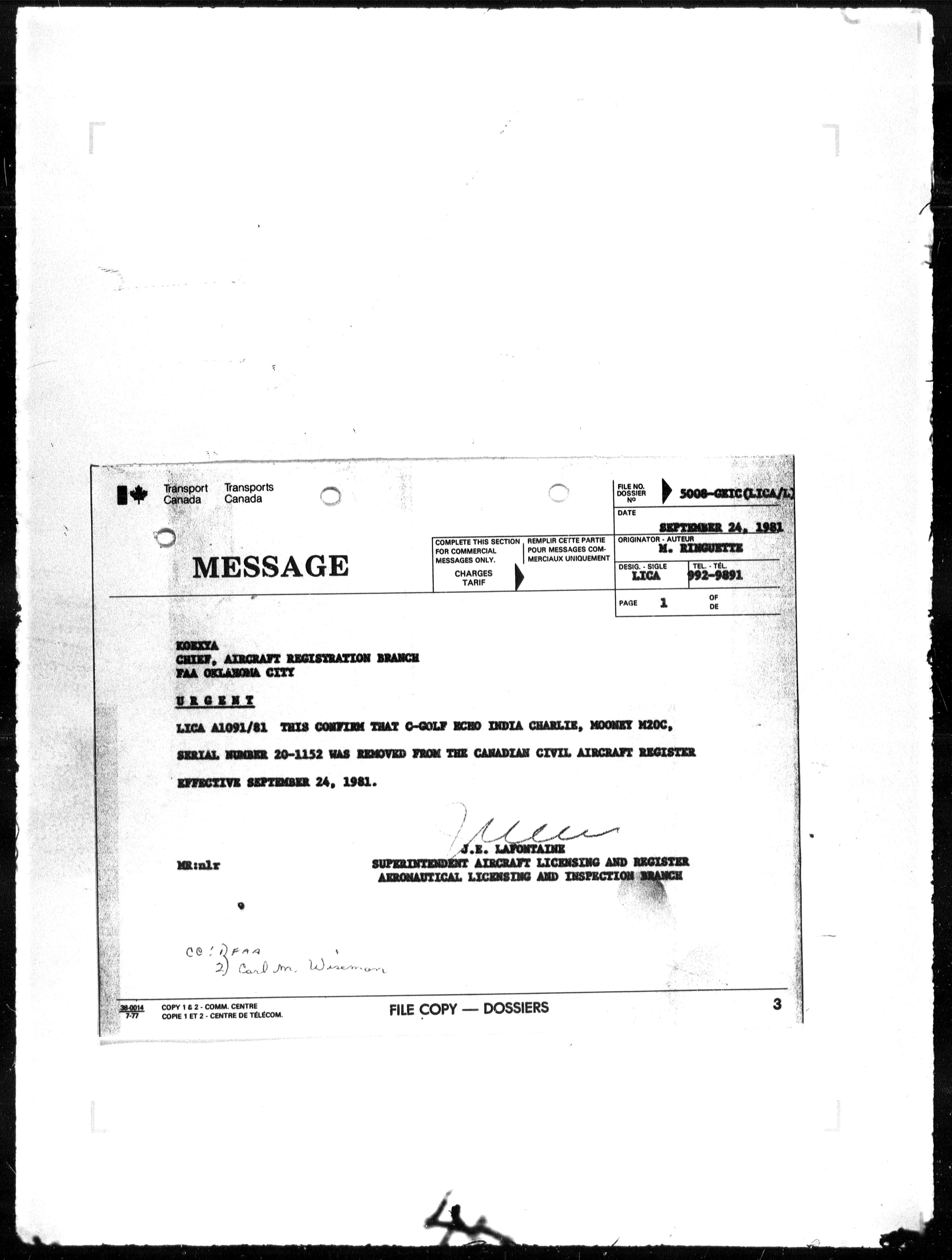 Department of Transport : Civil aircraft registration, inspection and operation files, block 5008, 1920-1986 - 7867