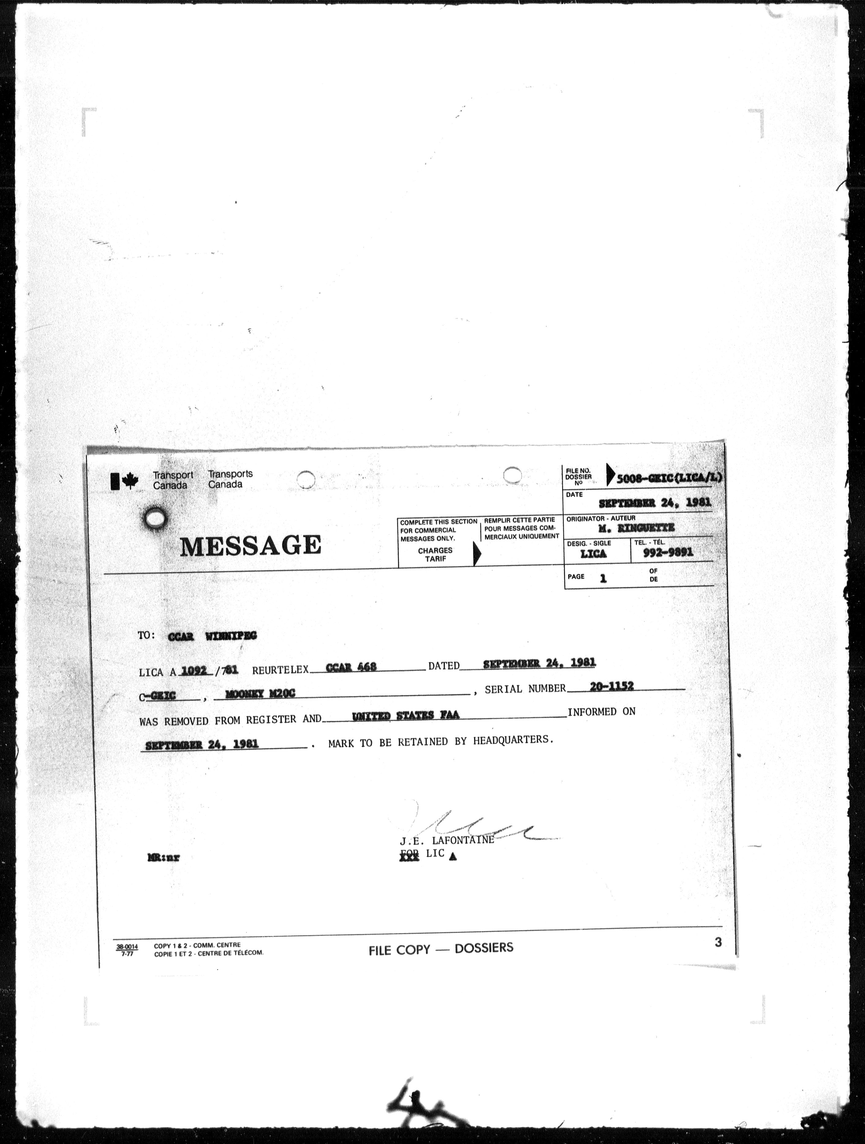 Department of Transport : Civil aircraft registration, inspection and operation files, block 5008, 1920-1986 - 7867