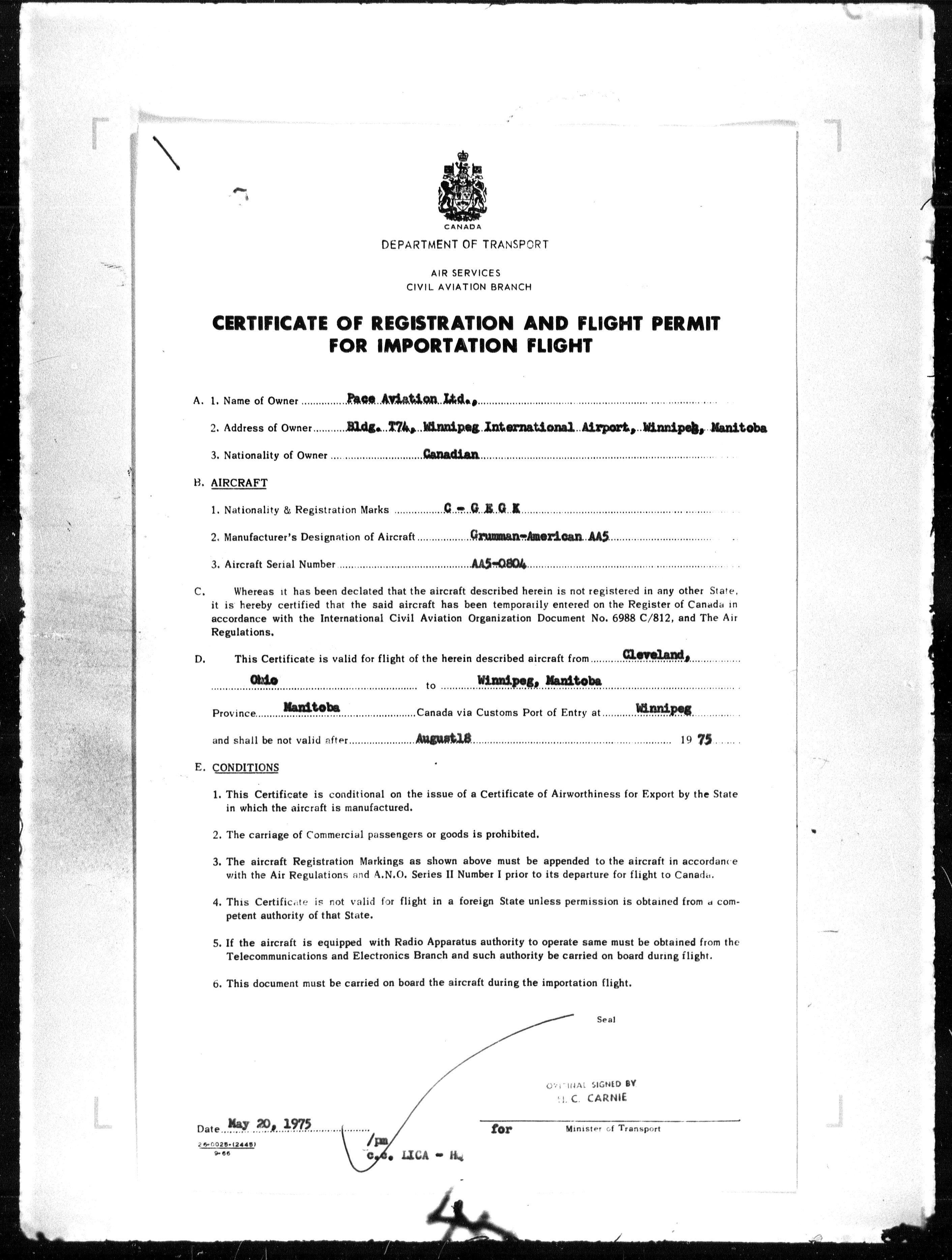 Department of Transport : Civil aircraft registration, inspection and operation files, block 5008, 1920-1986 - 7867