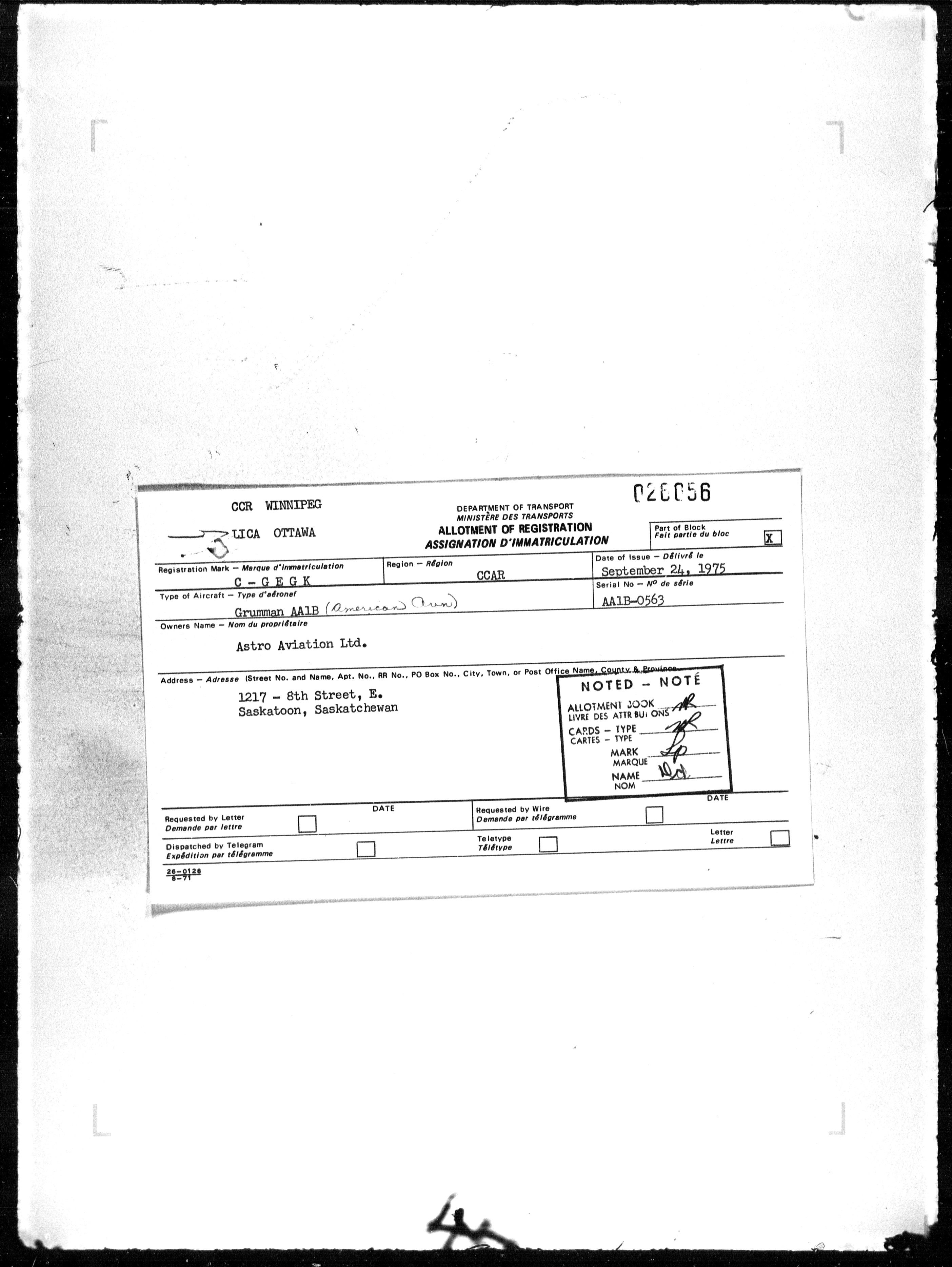Department of Transport : Civil aircraft registration, inspection and operation files, block 5008, 1920-1986 - 7867