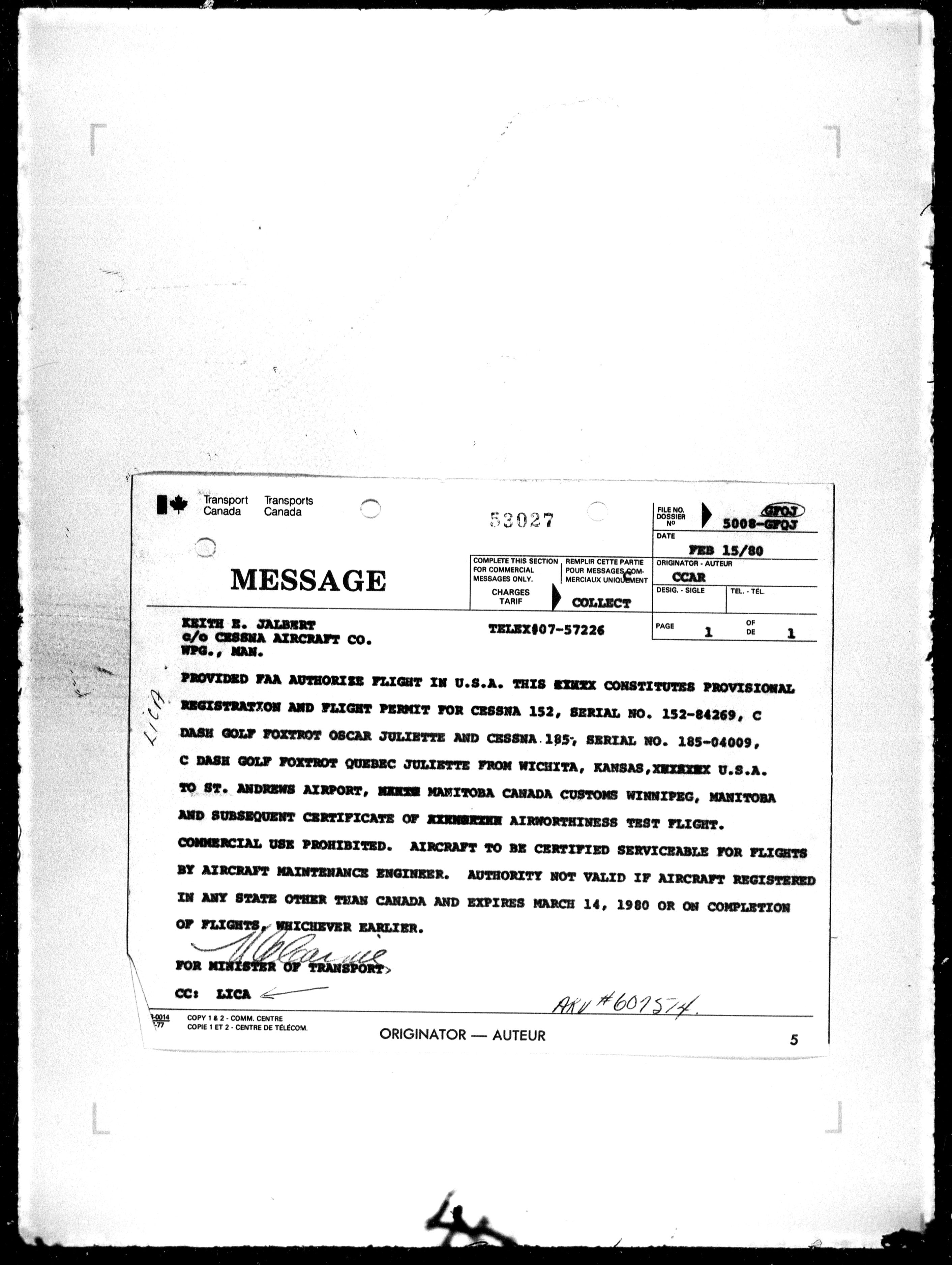 Department of Transport : Civil aircraft registration, inspection and operation files, block 5008, 1920-1986 - 7868