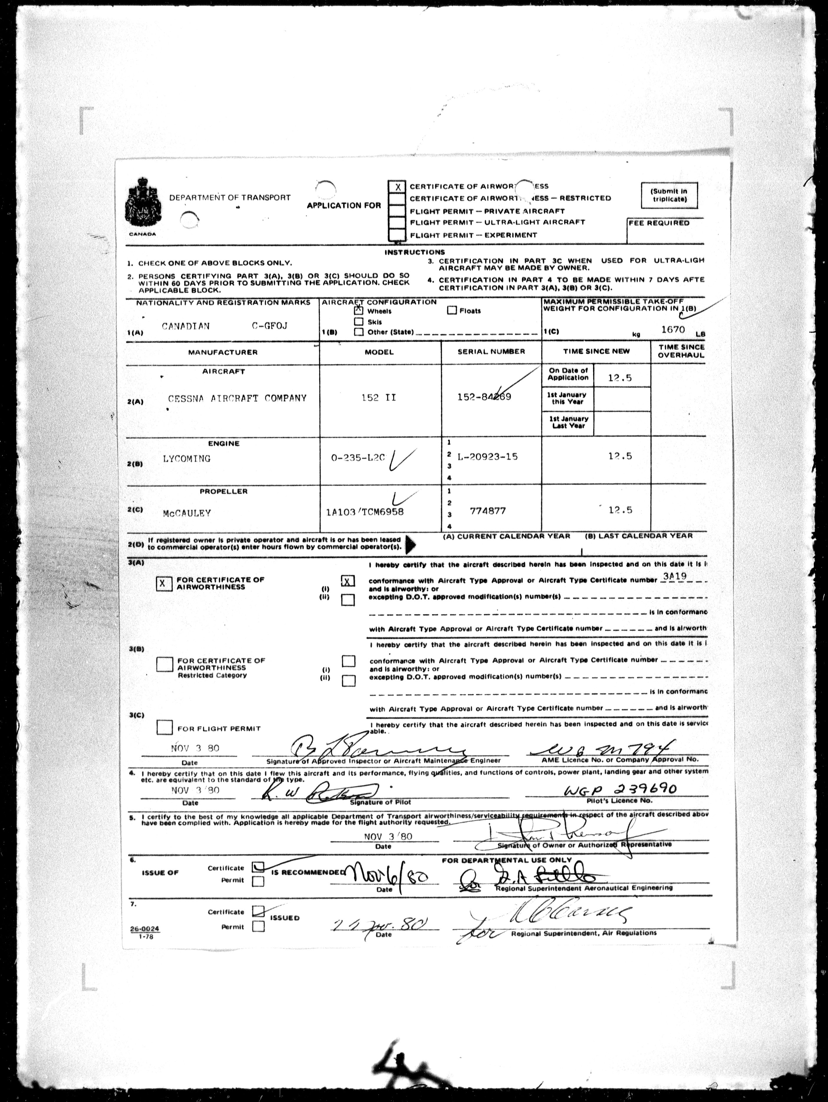Department of Transport : Civil aircraft registration, inspection and operation files, block 5008, 1920-1986 - 7868