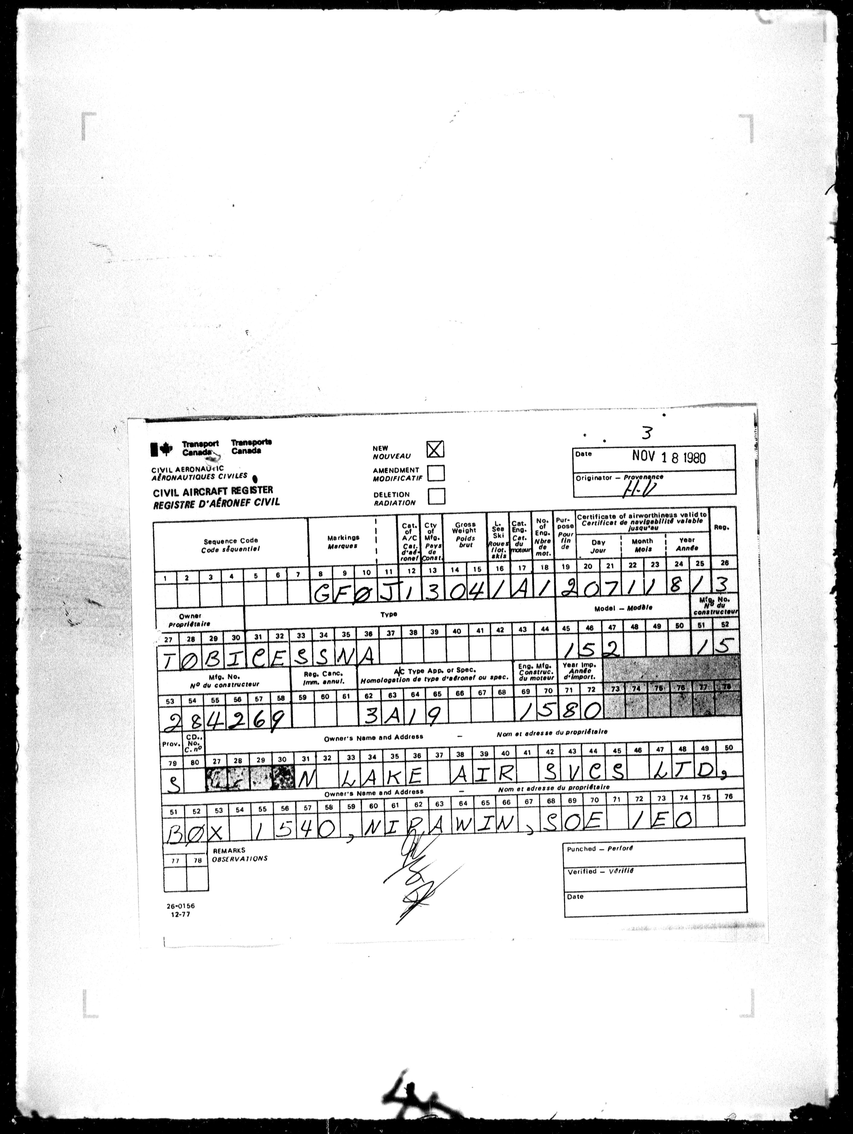 Department of Transport : Civil aircraft registration, inspection and operation files, block 5008, 1920-1986 - 7868