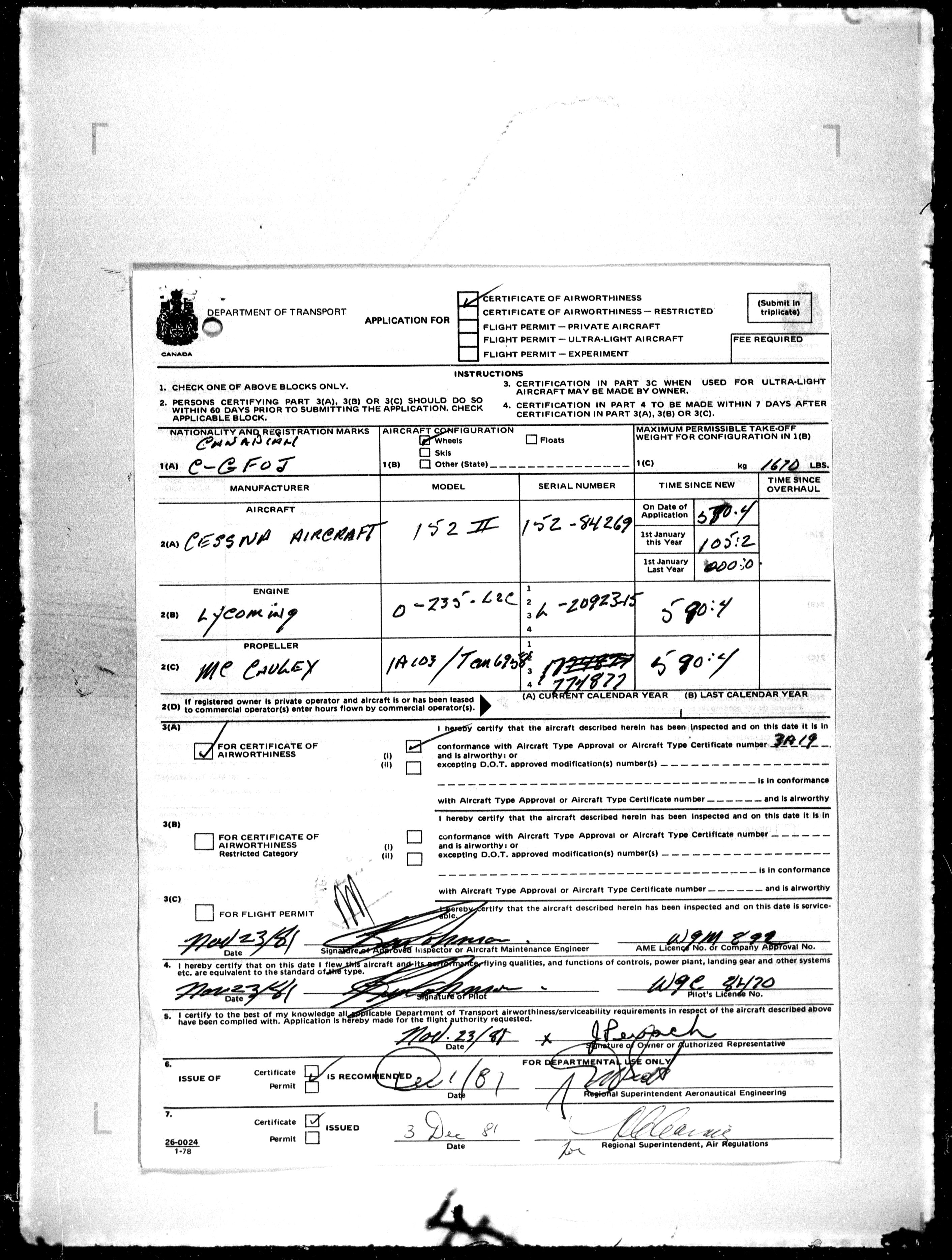 Department of Transport : Civil aircraft registration, inspection and operation files, block 5008, 1920-1986 - 7868