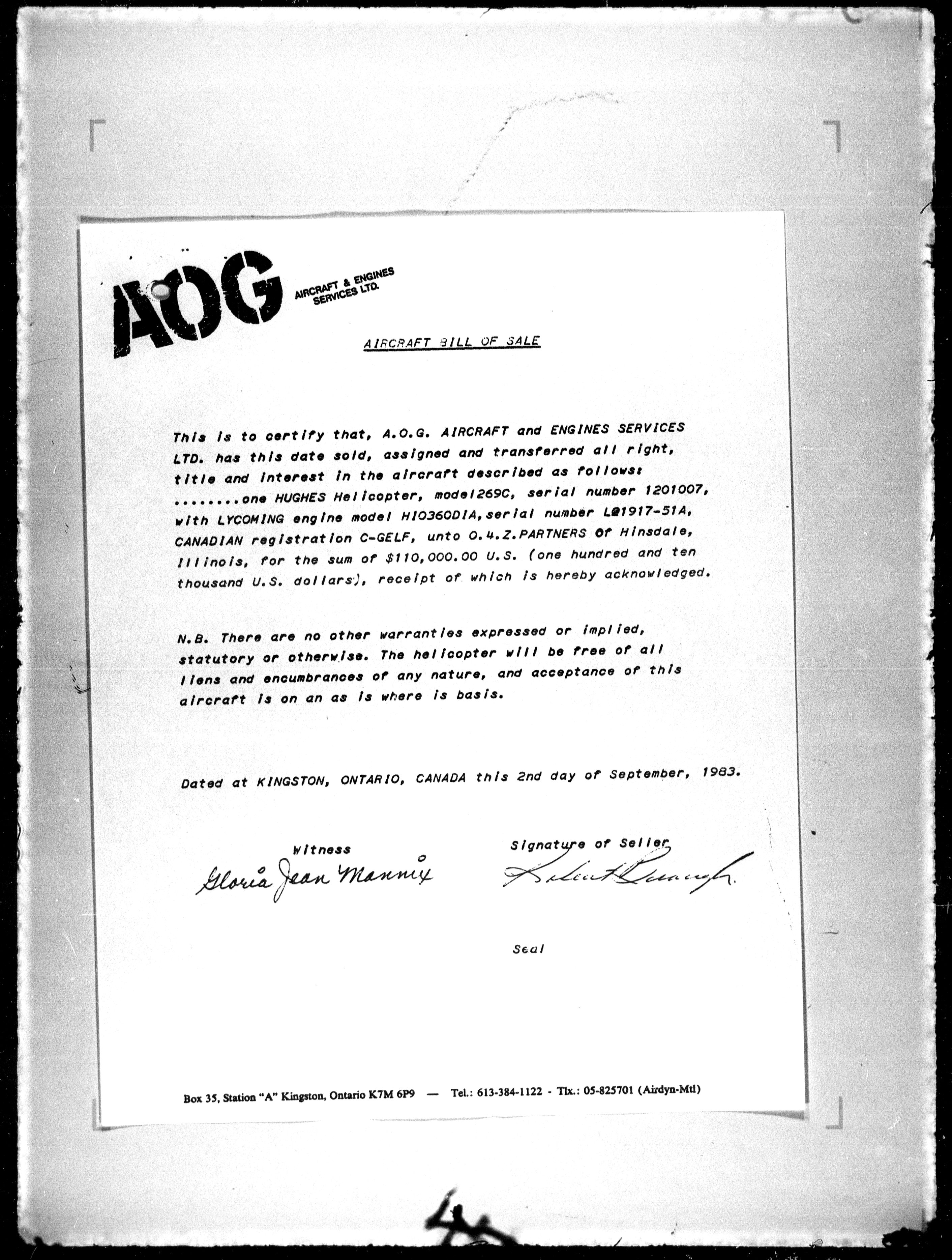 Department of Transport : Civil aircraft registration, inspection and operation files, block 5008, 1920-1986 - 7868