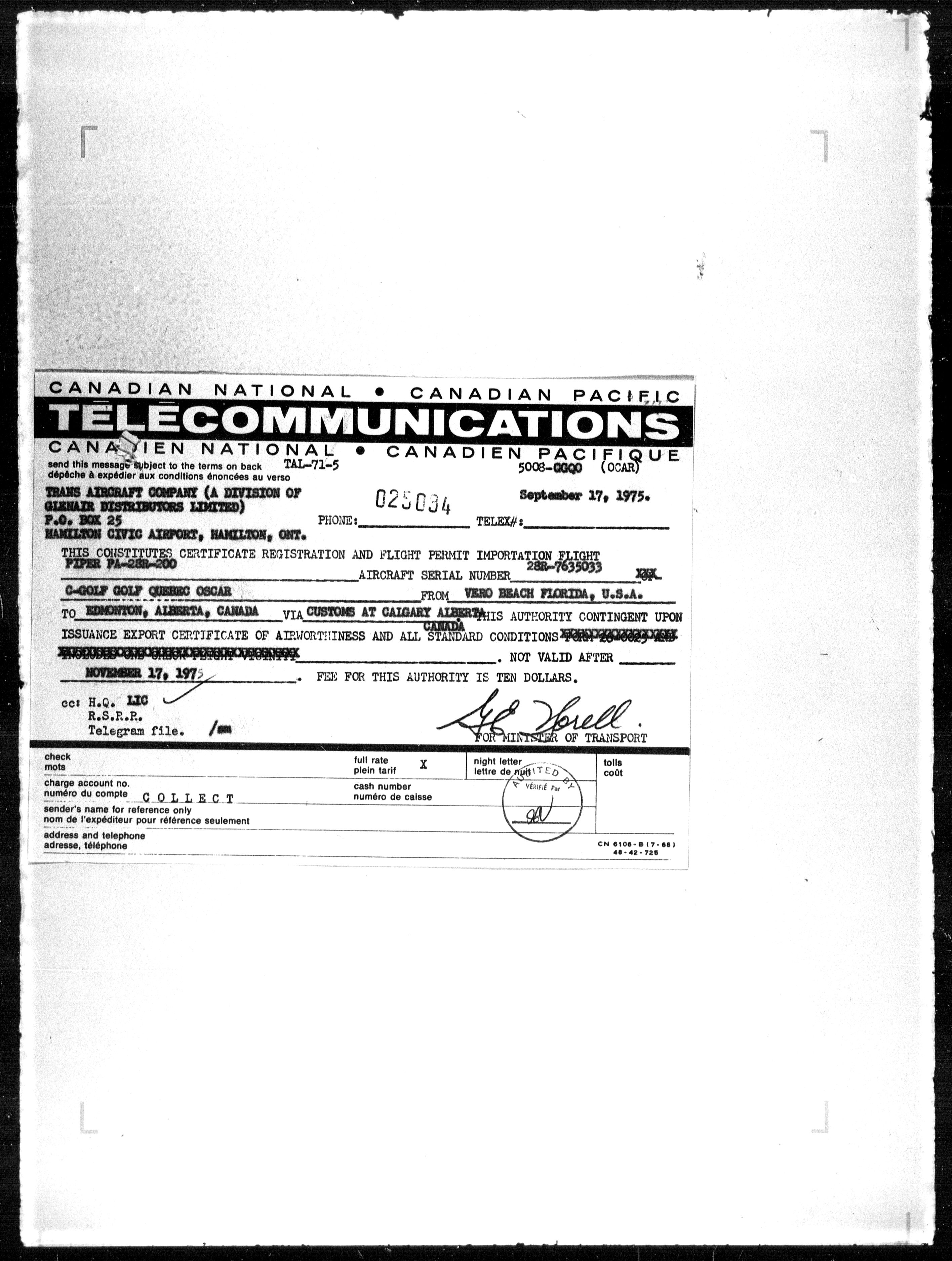 Department of Transport : Civil aircraft registration, inspection and operation files, block 5008, 1920-1986 - 7869