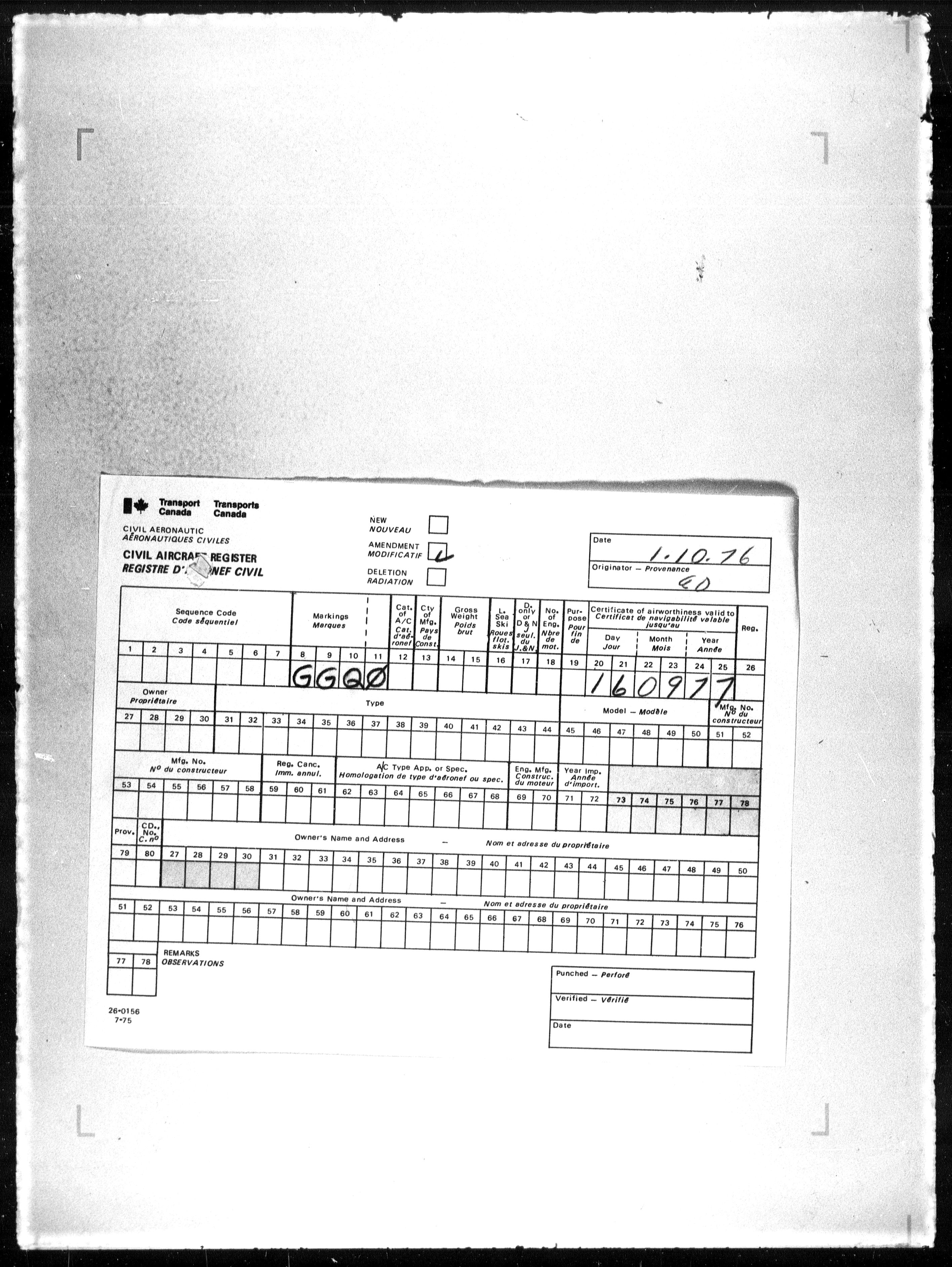 Department of Transport : Civil aircraft registration, inspection and operation files, block 5008, 1920-1986 - 7869