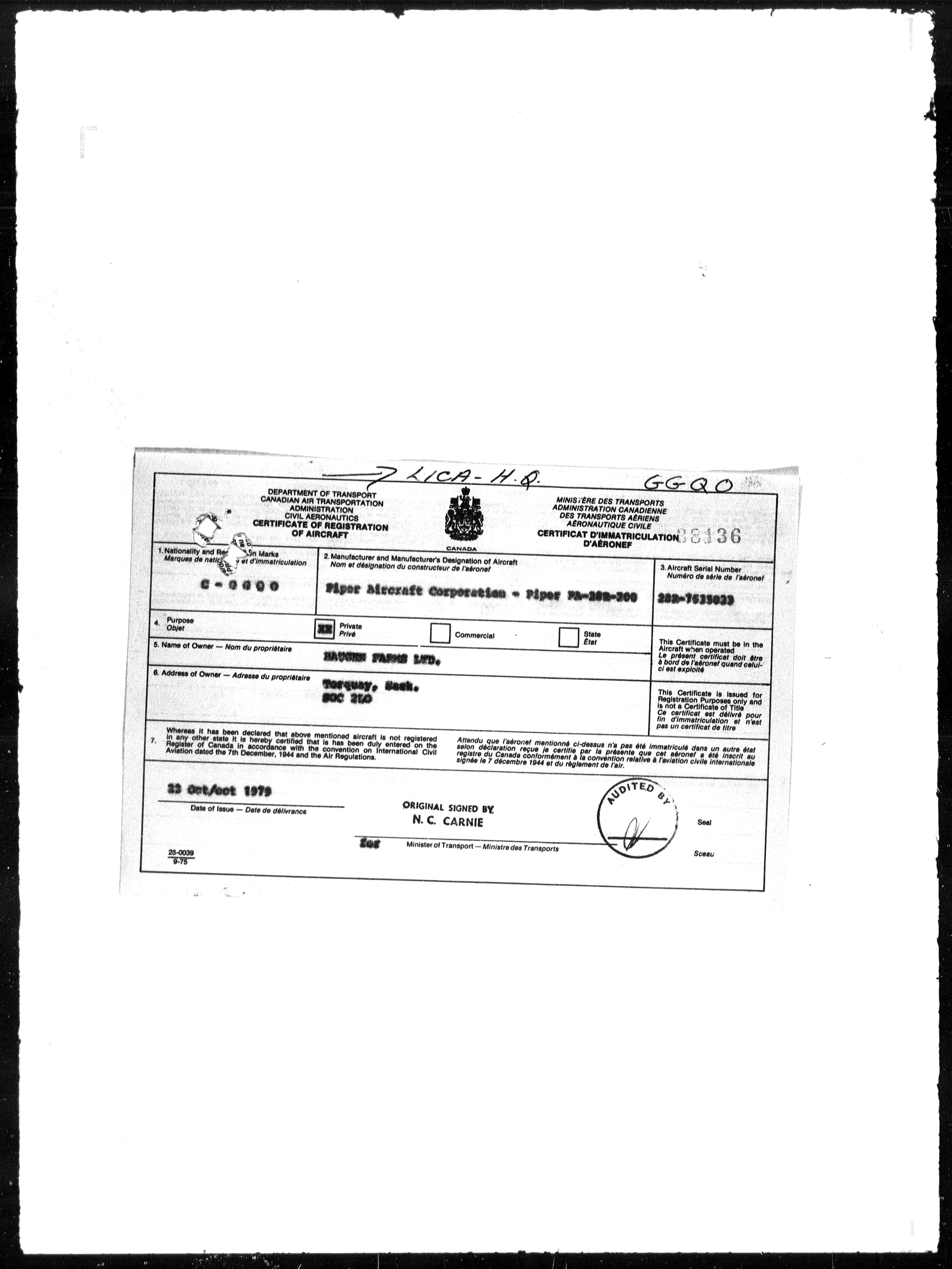 Department of Transport : Civil aircraft registration, inspection and operation files, block 5008, 1920-1986 - 7869