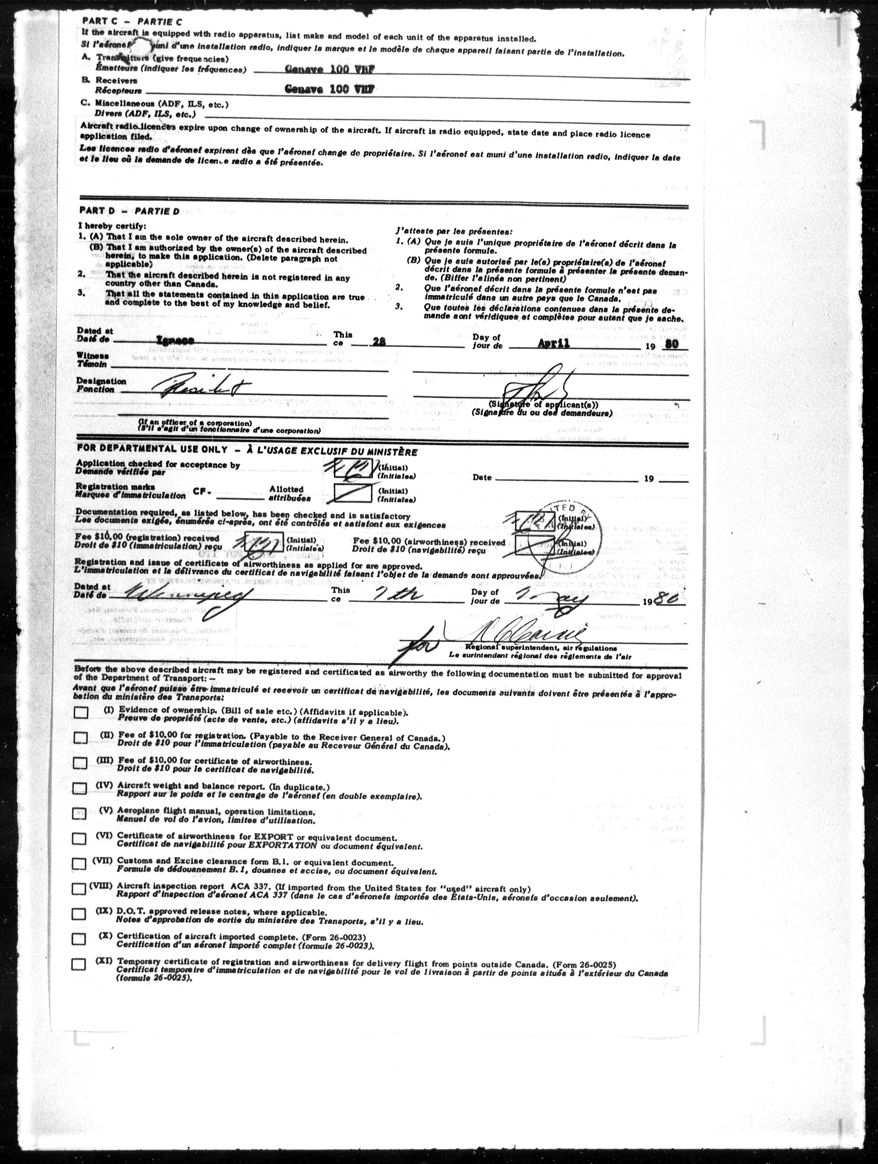 Department of Transport : Civil aircraft registration, inspection and operation files, block 5008, 1920-1986 - 7869