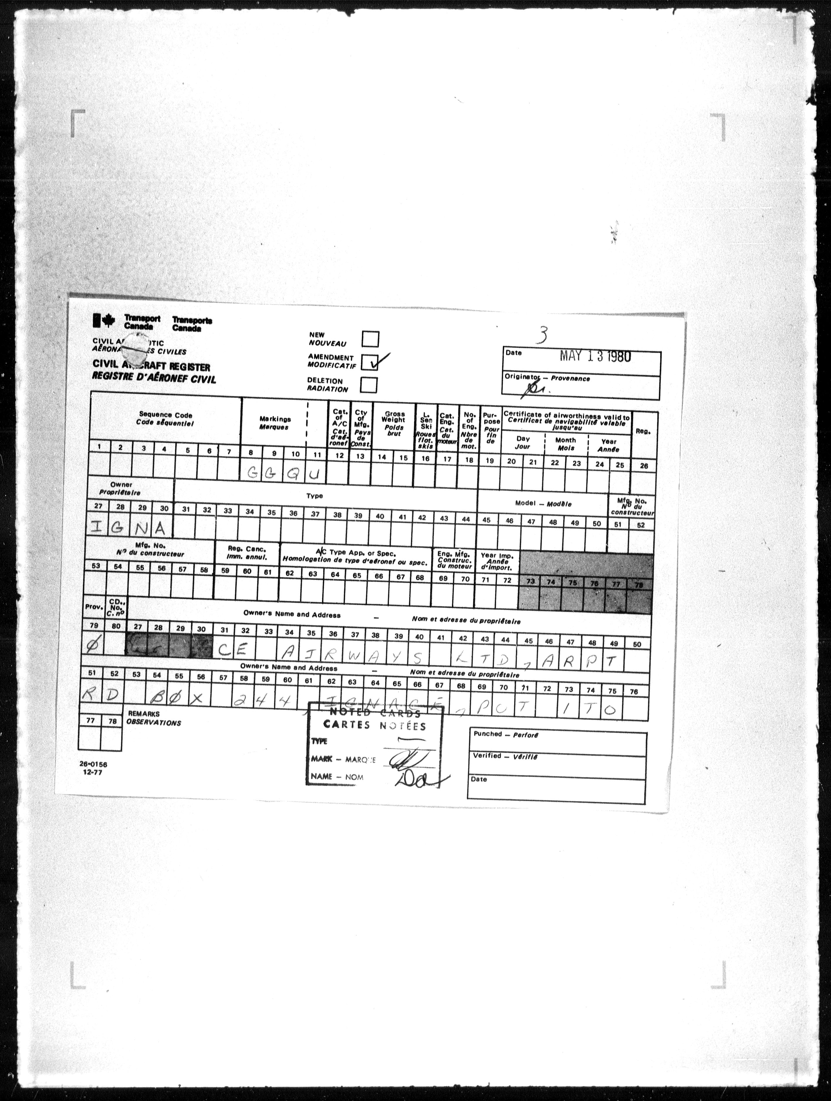 Department of Transport : Civil aircraft registration, inspection and operation files, block 5008, 1920-1986 - 7869