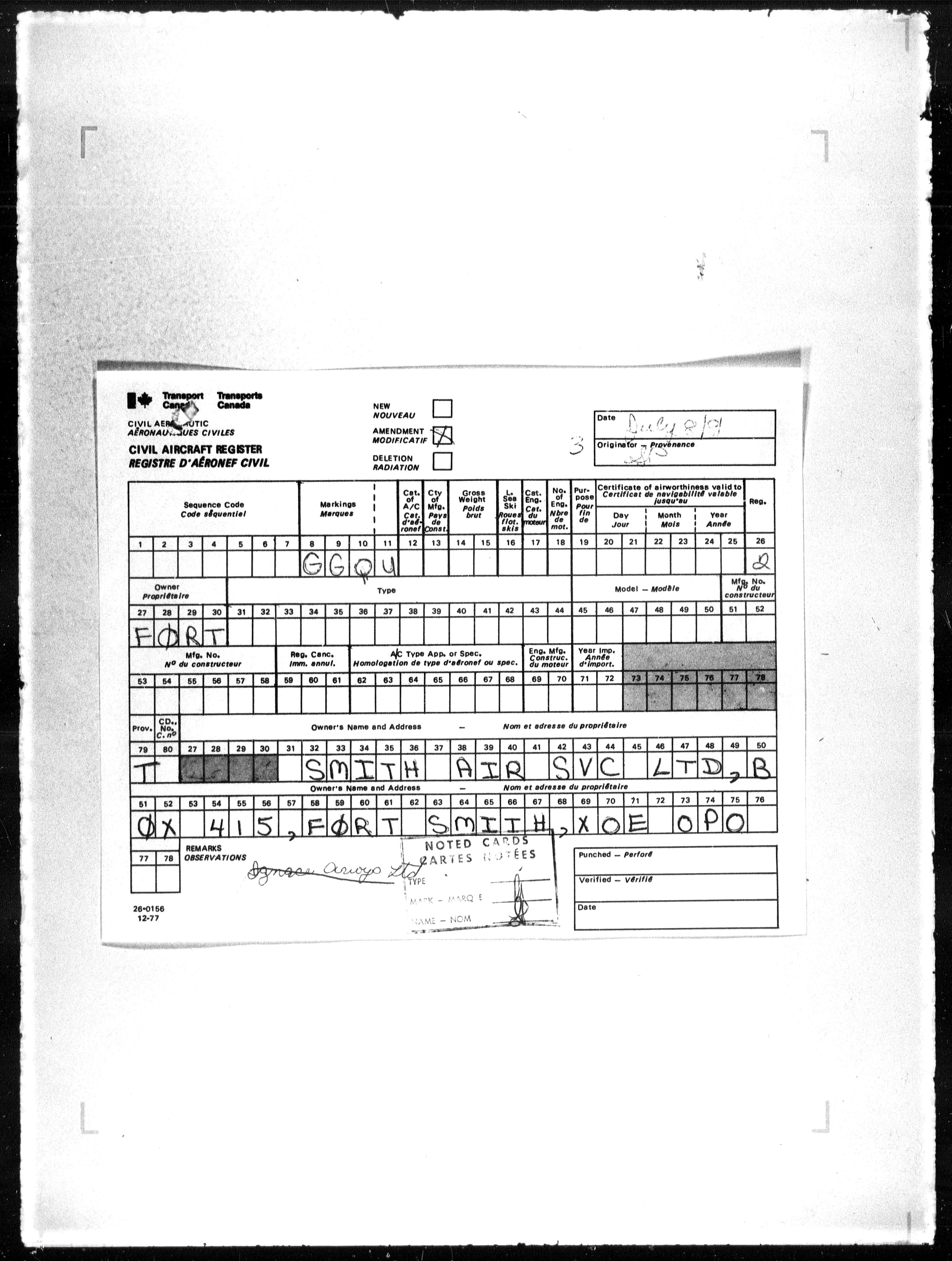 Department of Transport : Civil aircraft registration, inspection and operation files, block 5008, 1920-1986 - 7869