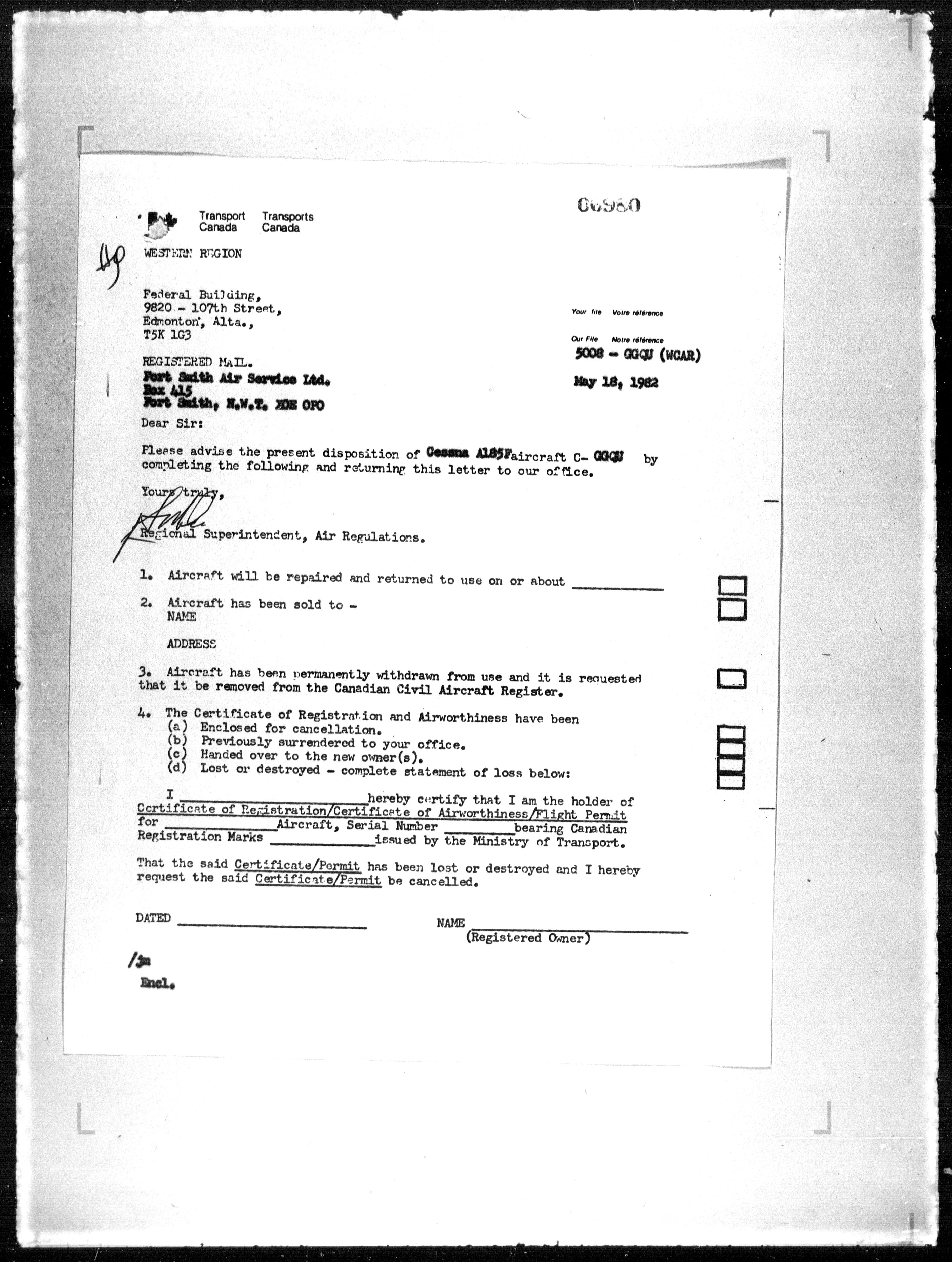 Department of Transport : Civil aircraft registration, inspection and operation files, block 5008, 1920-1986 - 7869