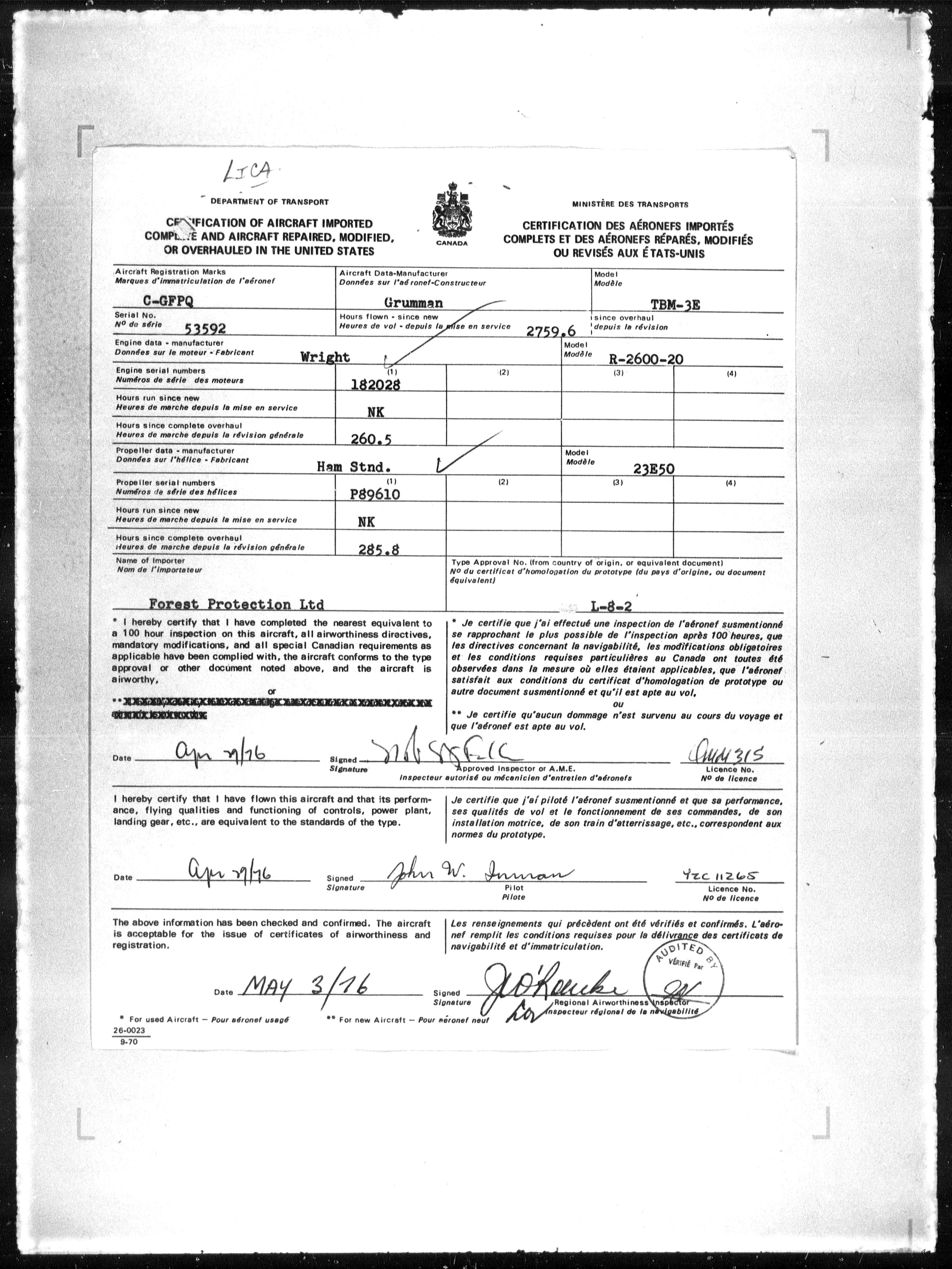 Department of Transport : Civil aircraft registration, inspection and operation files, block 5008, 1920-1986 - 7869