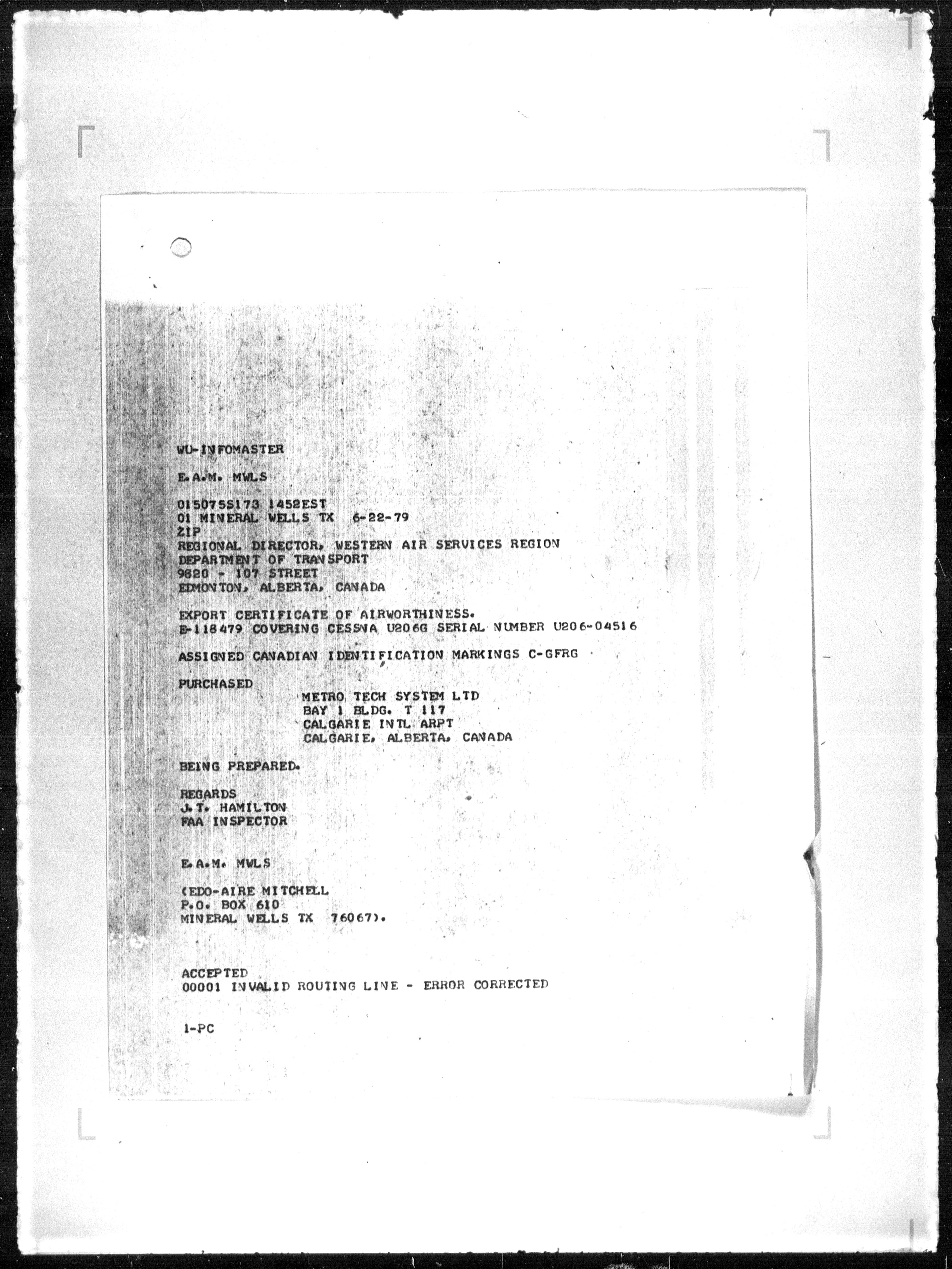 Department of Transport : Civil aircraft registration, inspection and operation files, block 5008, 1920-1986 - 7869