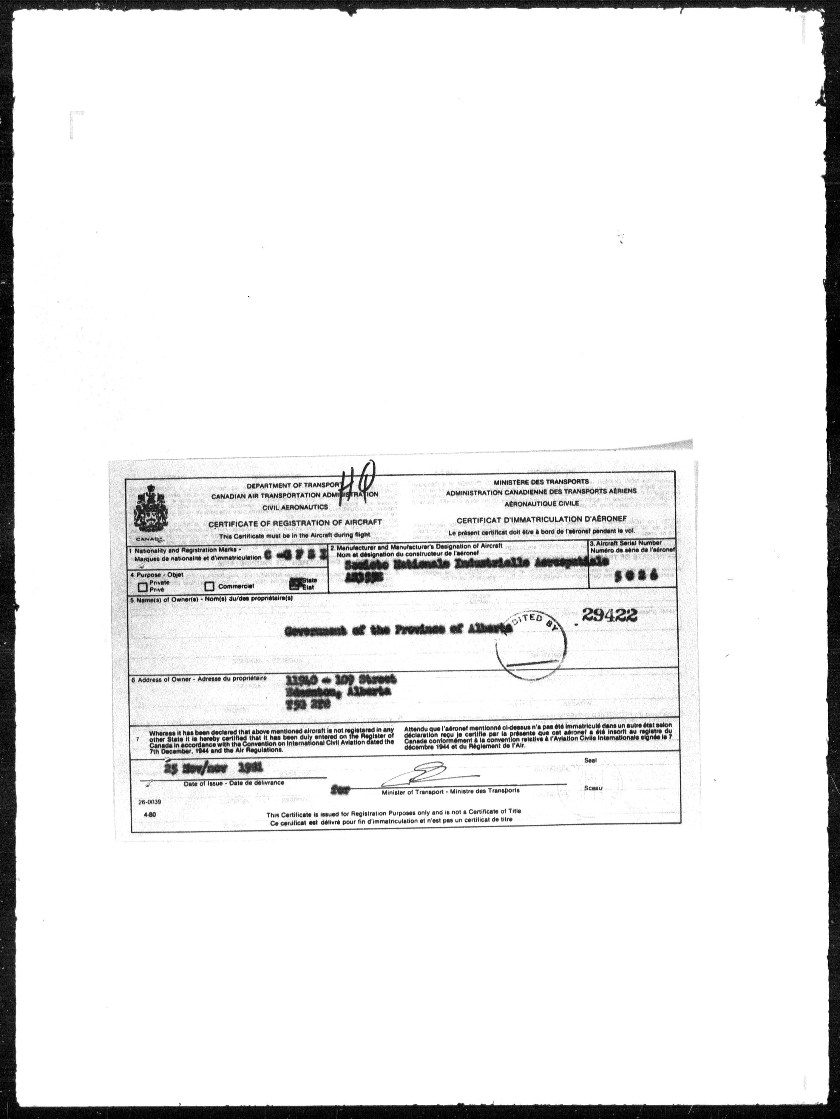Department of Transport : Civil aircraft registration, inspection and operation files, block 5008, 1920-1986 - 7869