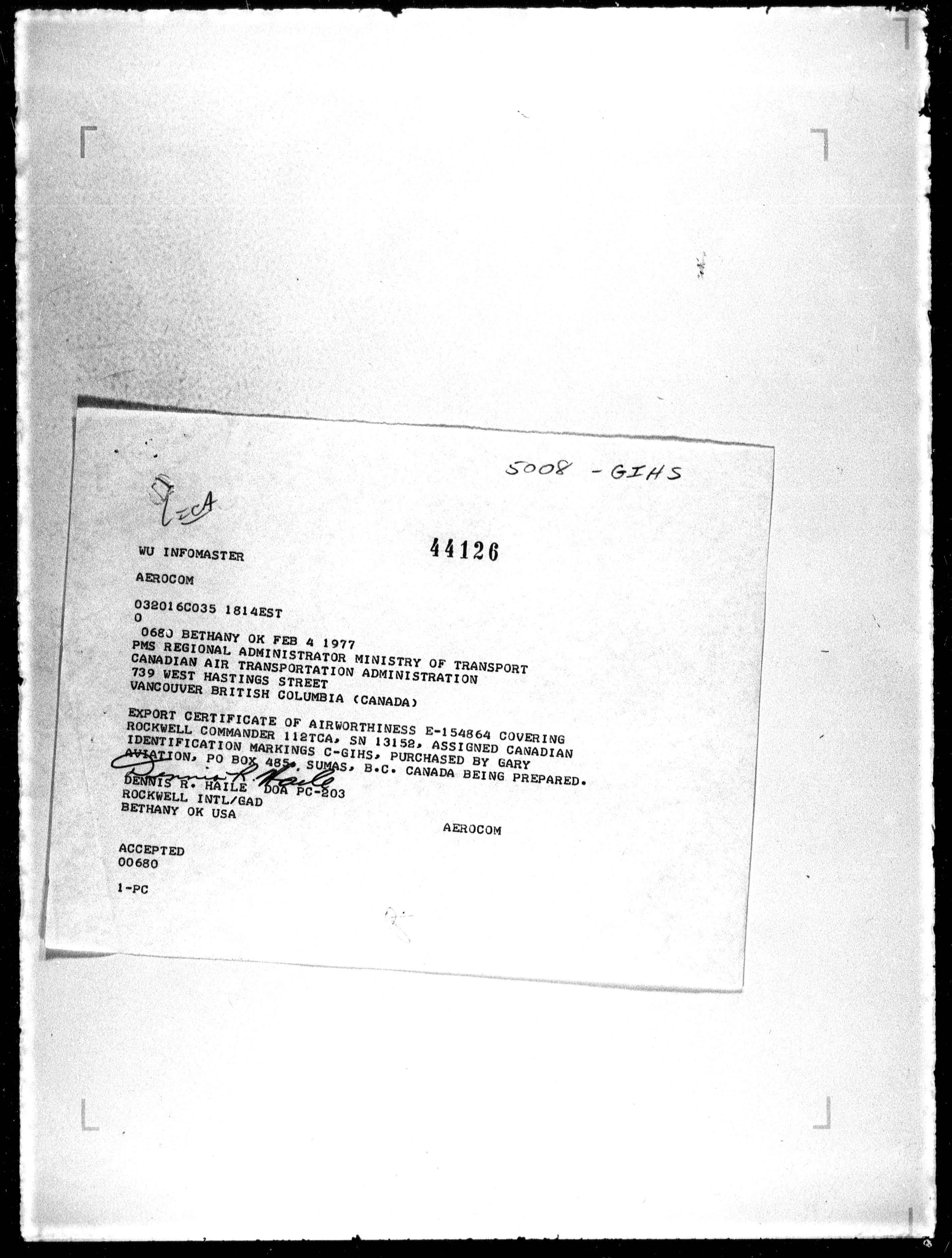 Department of Transport : Civil aircraft registration, inspection and operation files, block 5008, 1920-1986 - 7871