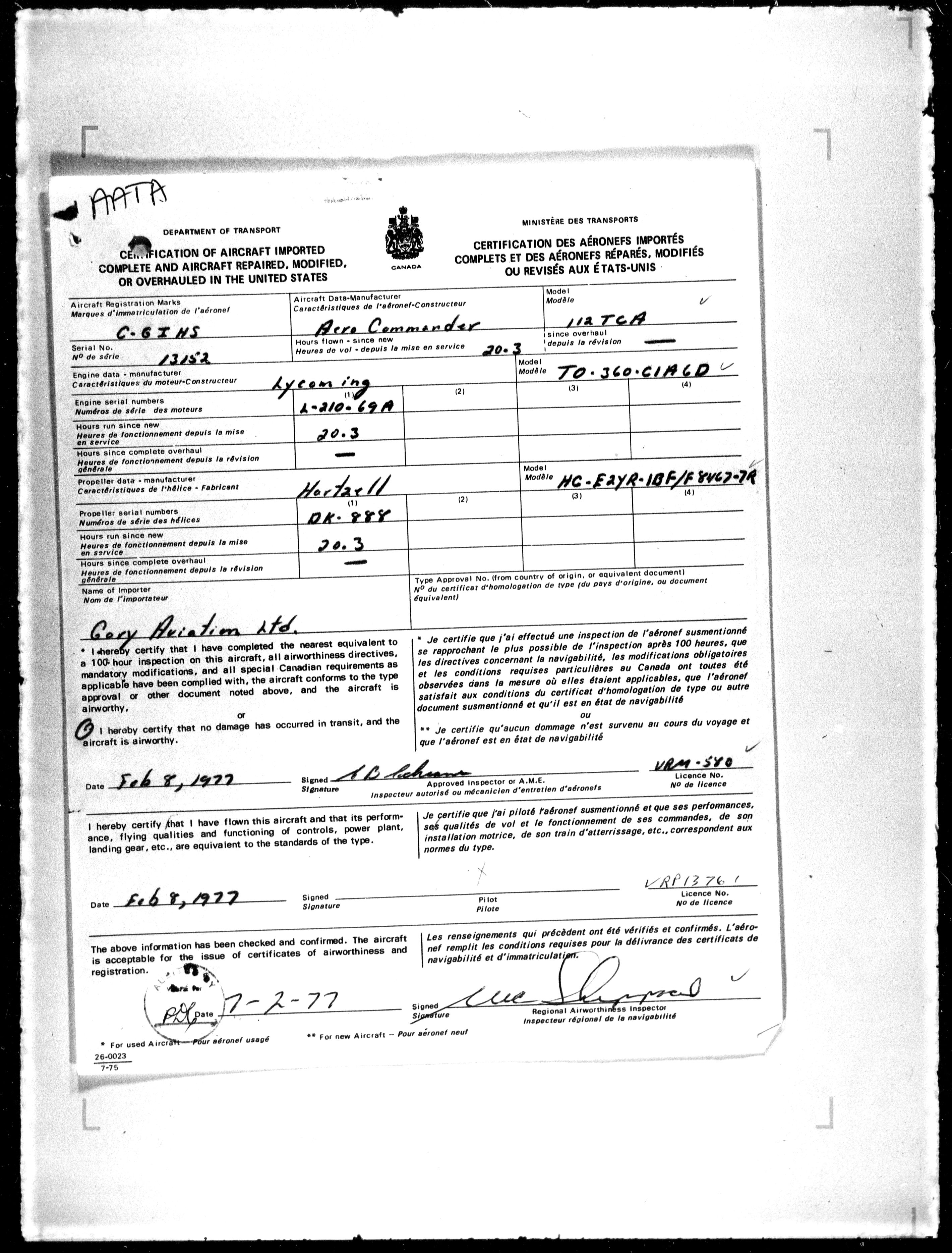 Department of Transport : Civil aircraft registration, inspection and operation files, block 5008, 1920-1986 - 7871