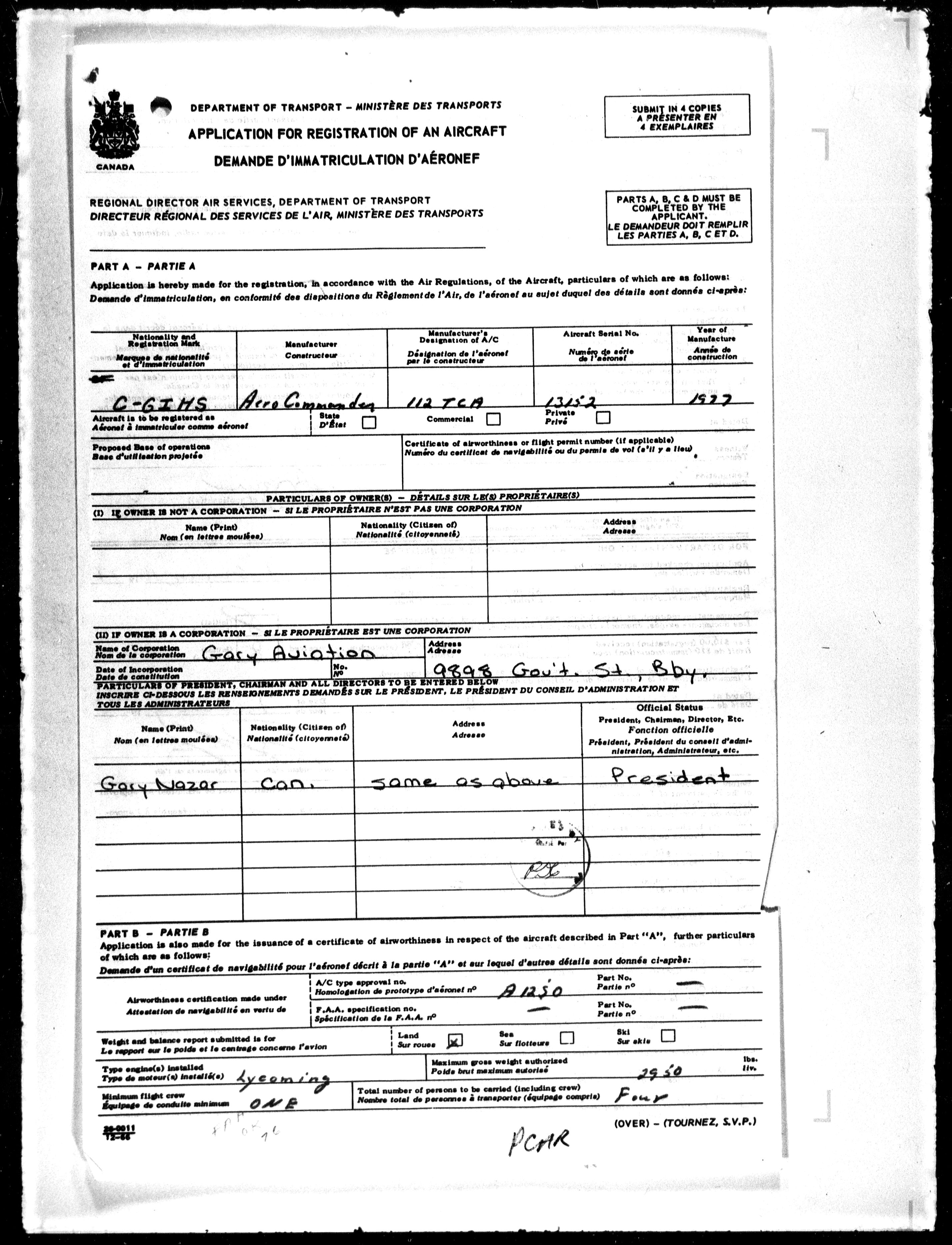 Department of Transport : Civil aircraft registration, inspection and operation files, block 5008, 1920-1986 - 7871