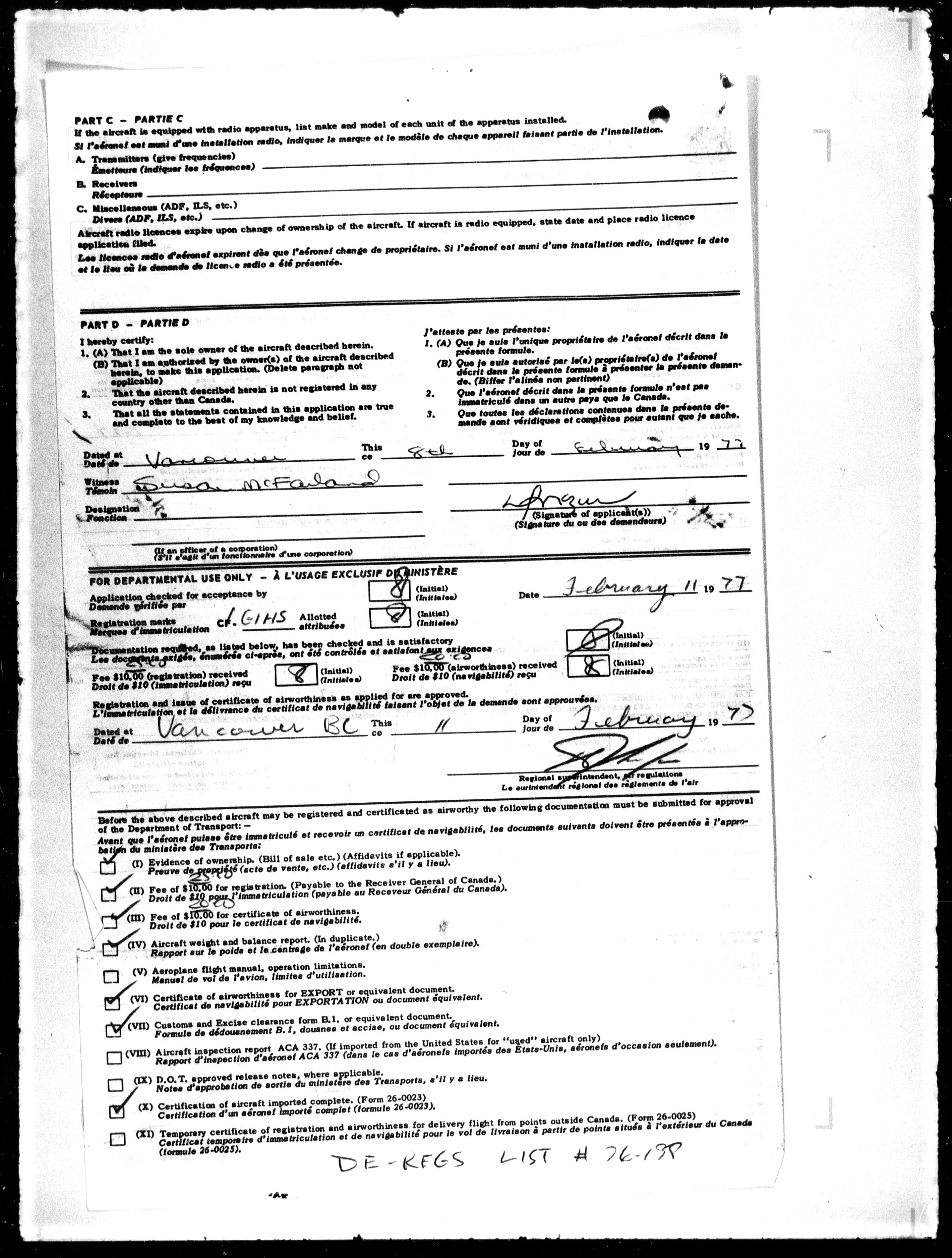 Department of Transport : Civil aircraft registration, inspection and operation files, block 5008, 1920-1986 - 7871