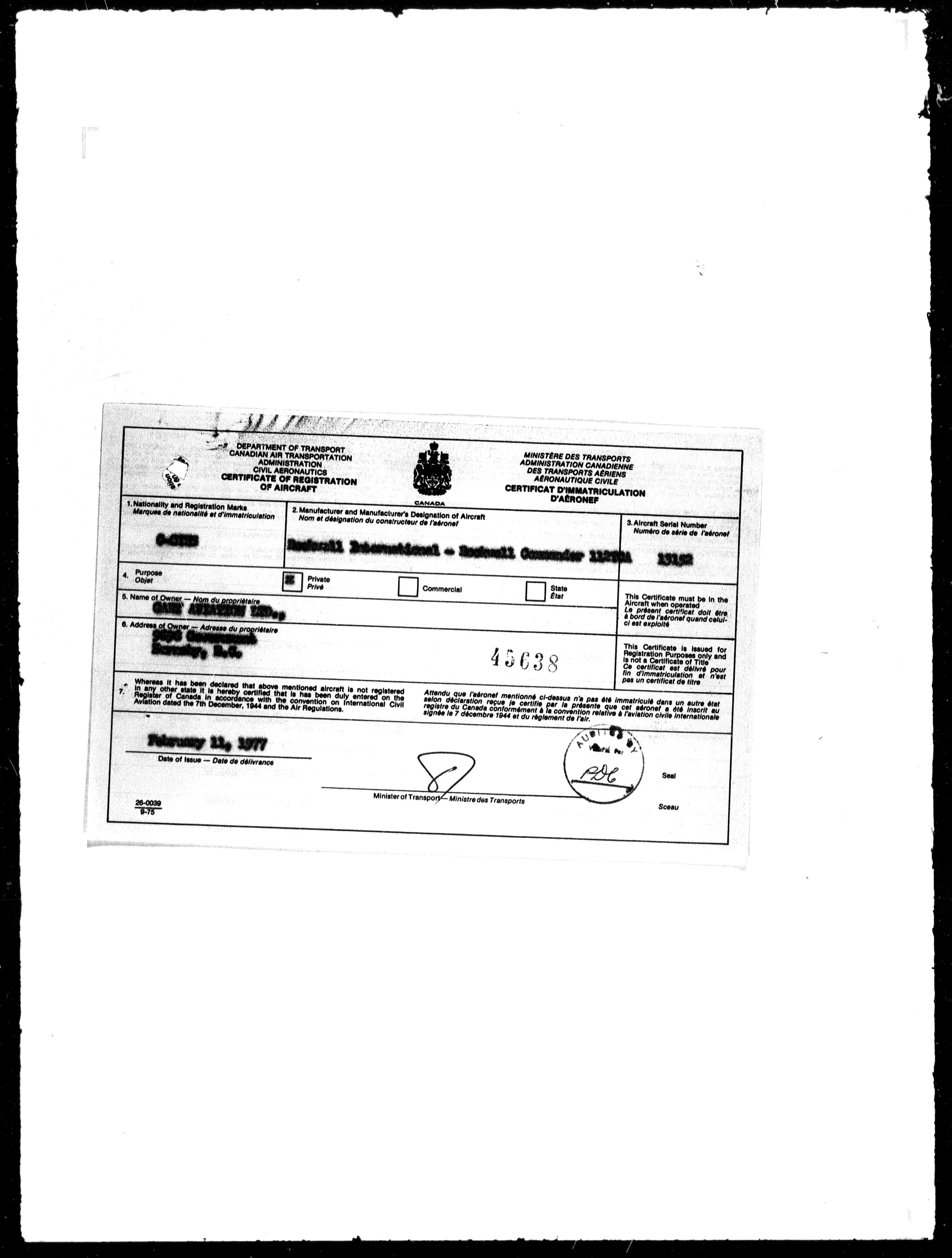 Department of Transport : Civil aircraft registration, inspection and operation files, block 5008, 1920-1986 - 7871