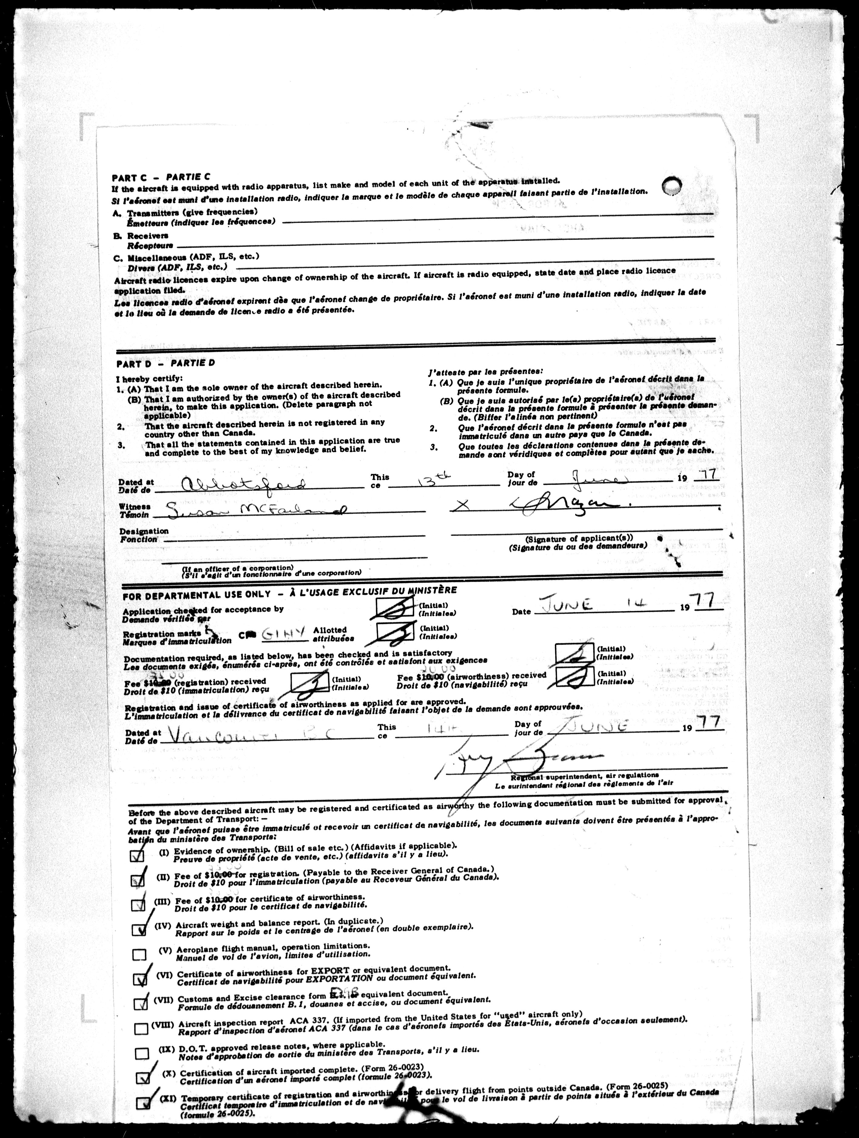 Department of Transport : Civil aircraft registration, inspection and operation files, block 5008, 1920-1986 - 7872
