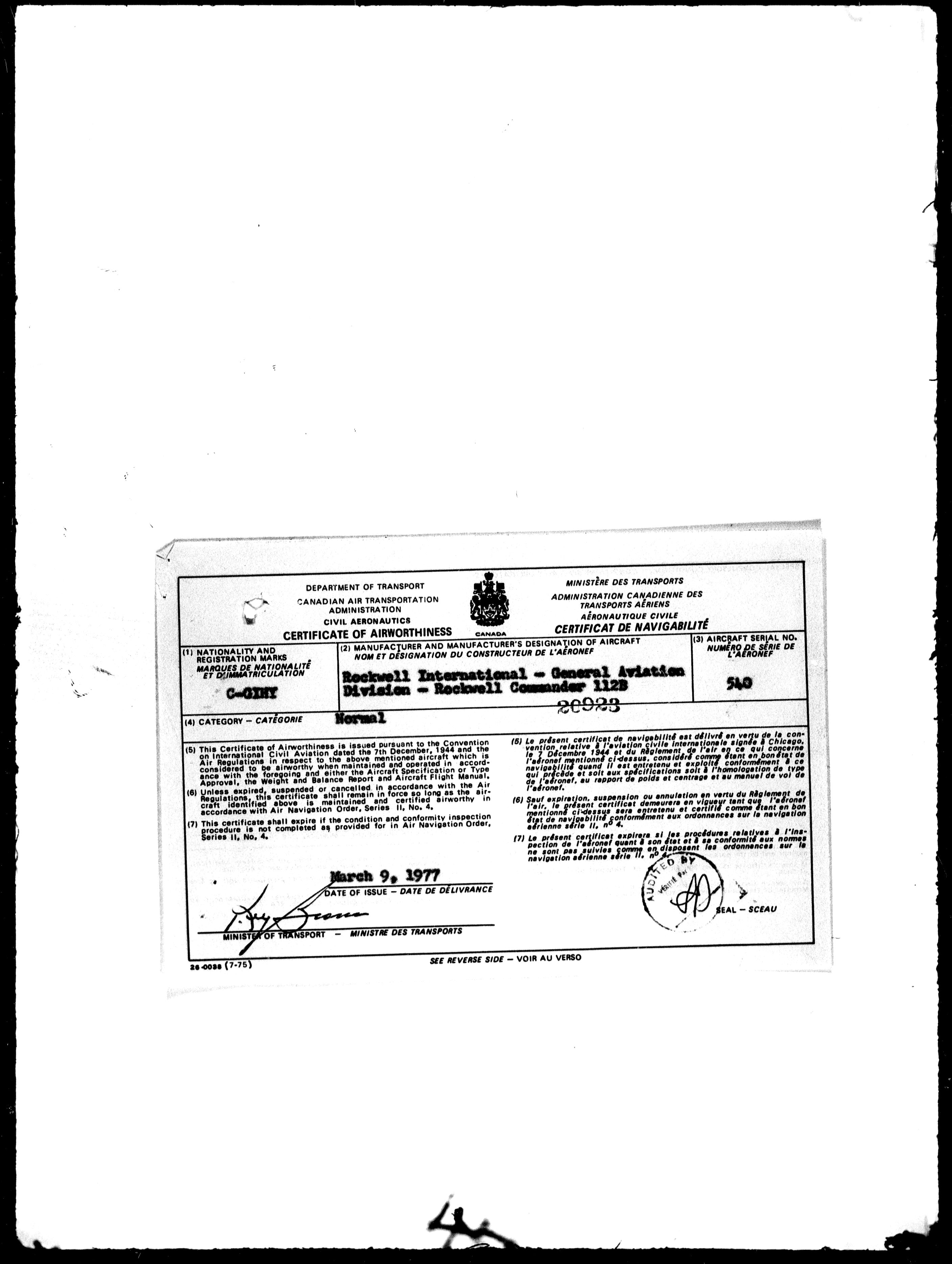 Department of Transport : Civil aircraft registration, inspection and operation files, block 5008, 1920-1986 - 7872
