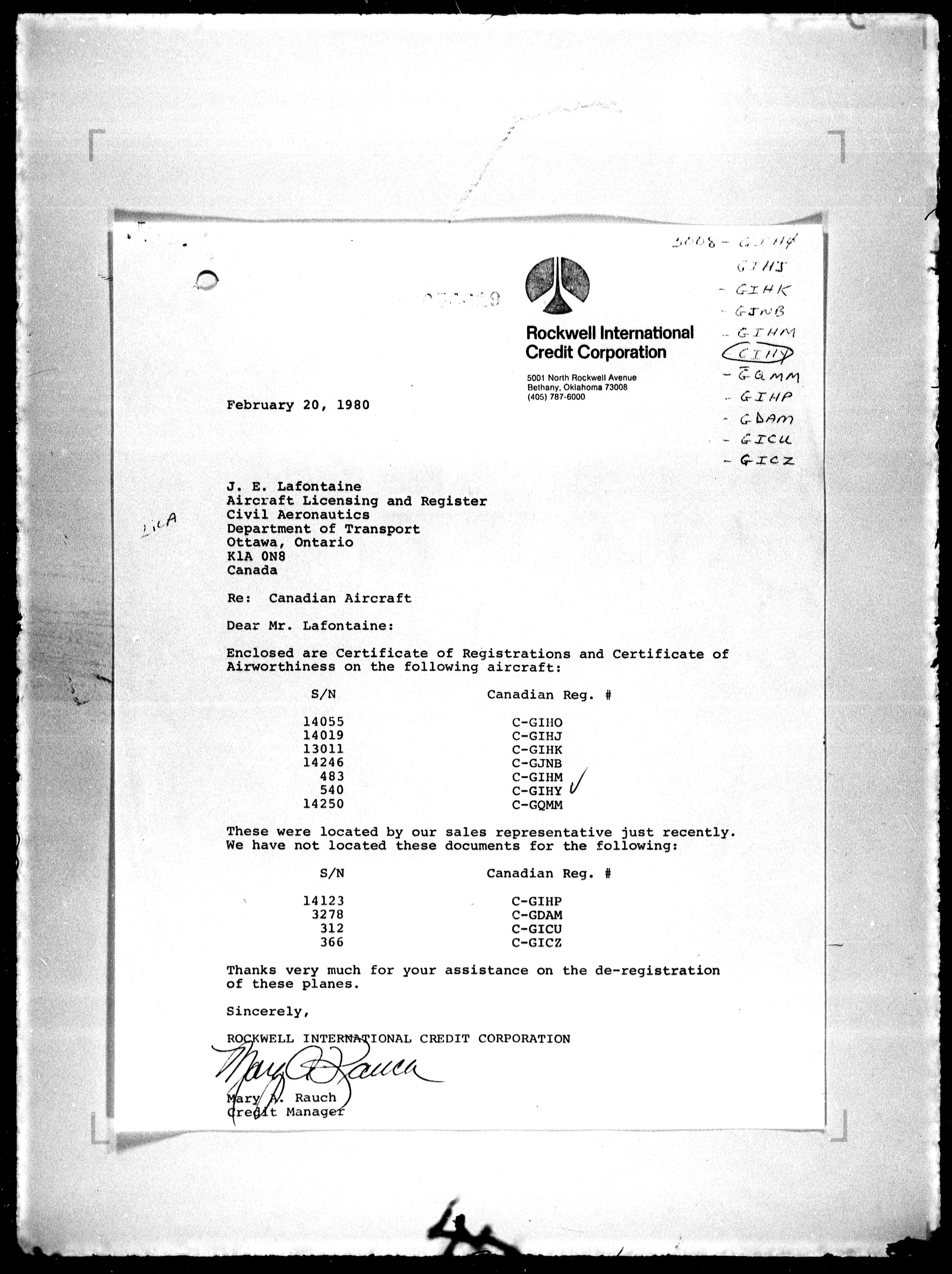 Department of Transport : Civil aircraft registration, inspection and operation files, block 5008, 1920-1986 - 7872