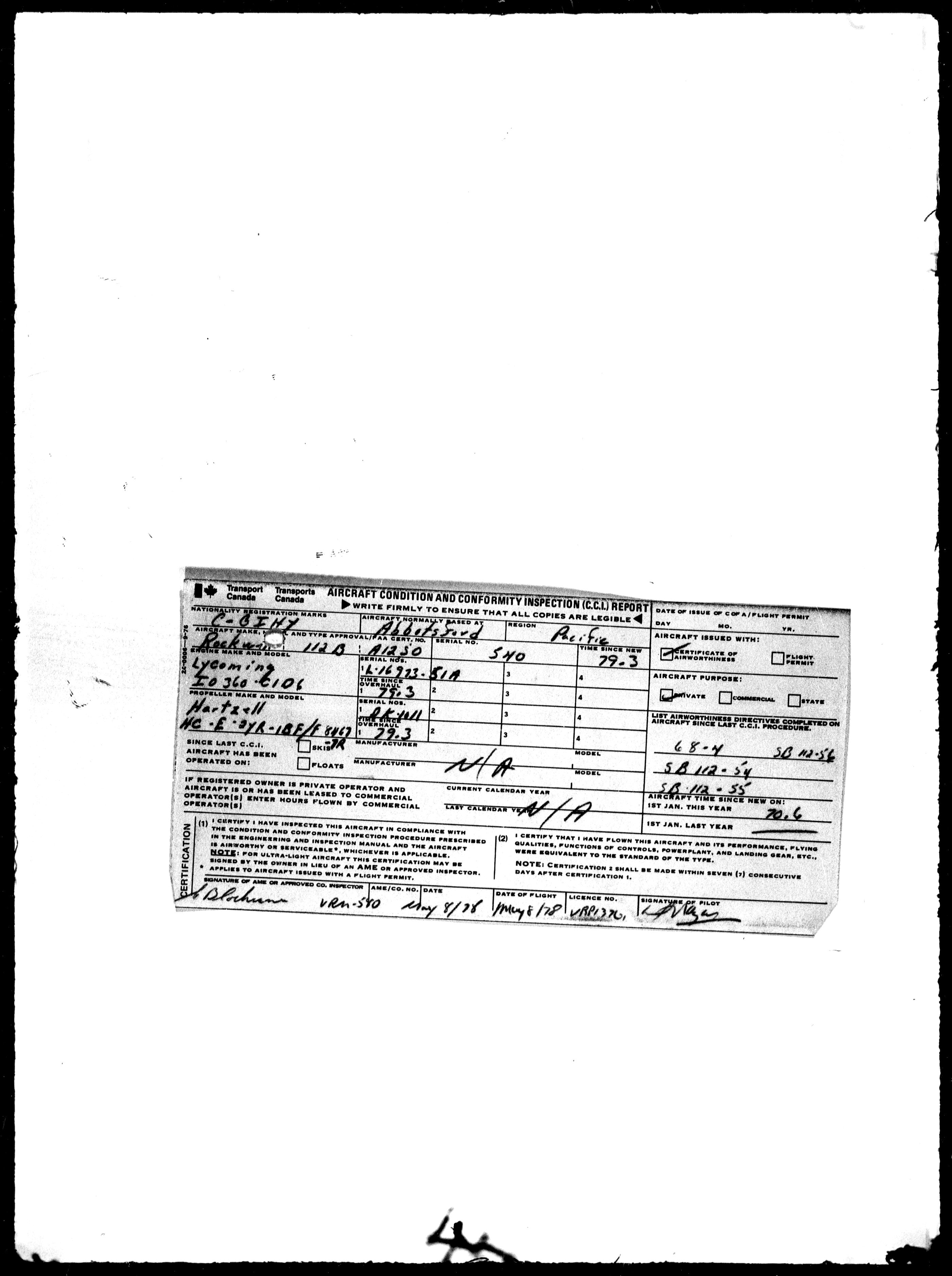 Department of Transport : Civil aircraft registration, inspection and operation files, block 5008, 1920-1986 - 7872