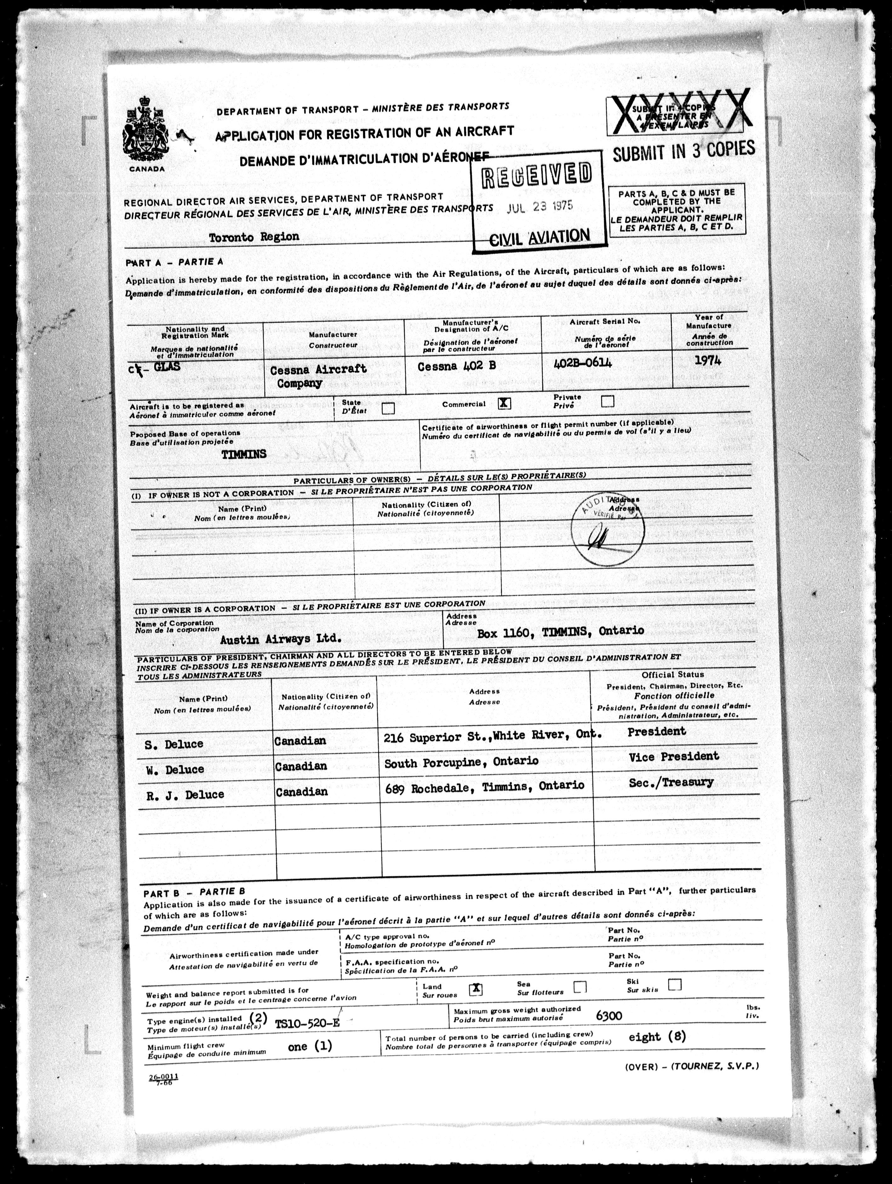 Department of Transport : Civil aircraft registration, inspection and operation files, block 5008, 1920-1986 - 7873