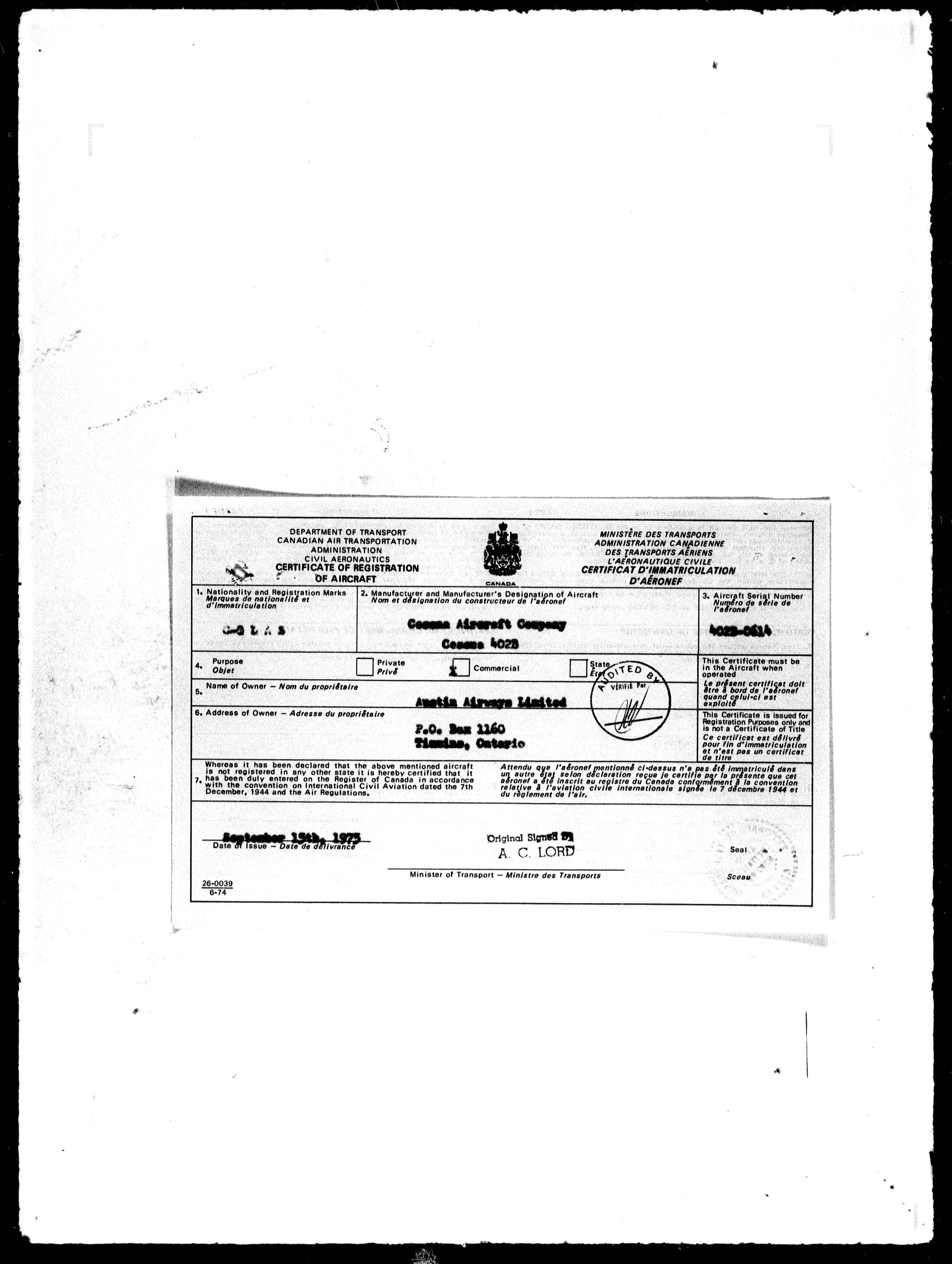 Department of Transport : Civil aircraft registration, inspection and operation files, block 5008, 1920-1986 - 7873
