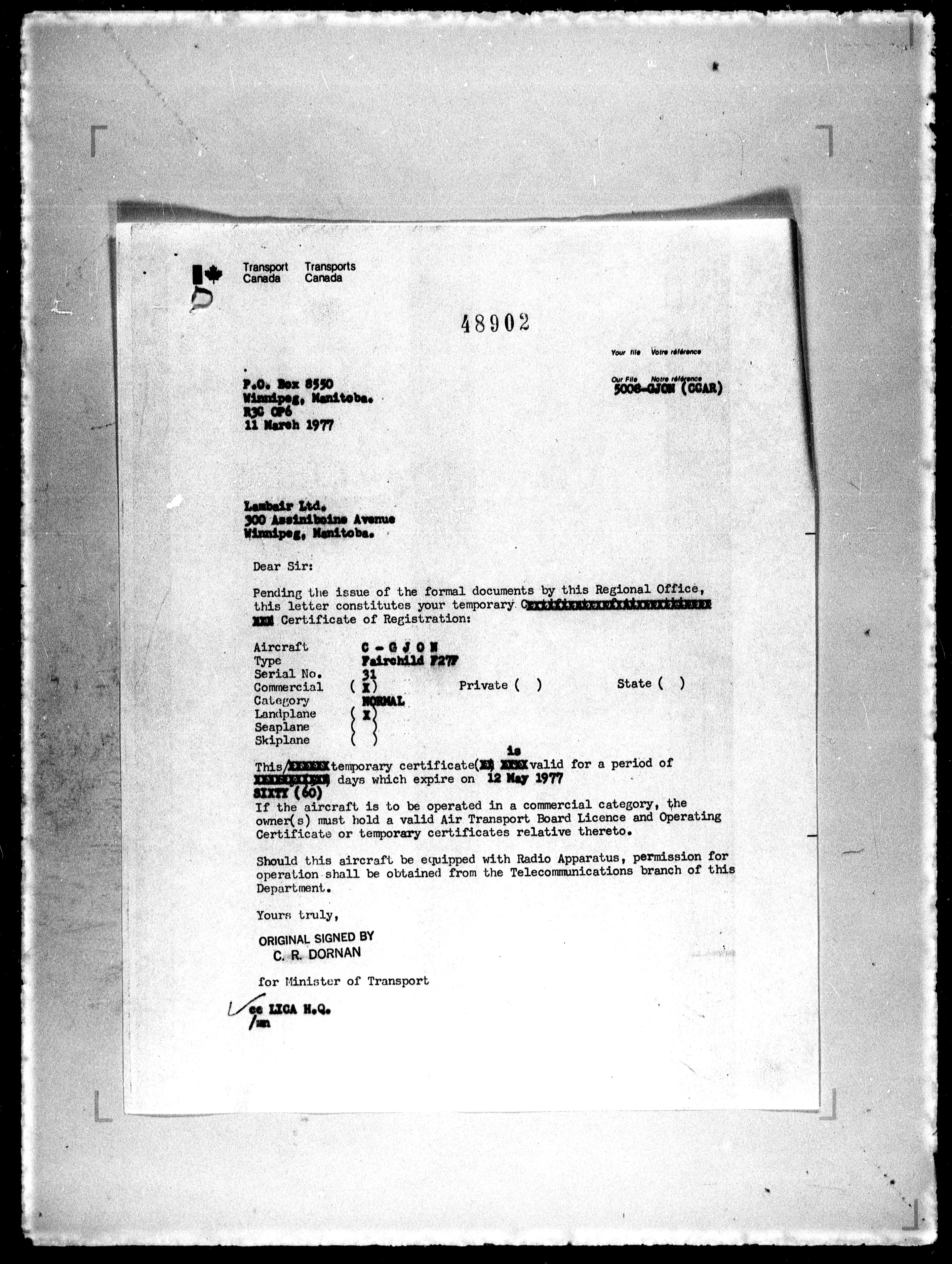 Department of Transport : Civil aircraft registration, inspection and operation files, block 5008, 1920-1986 - 7873