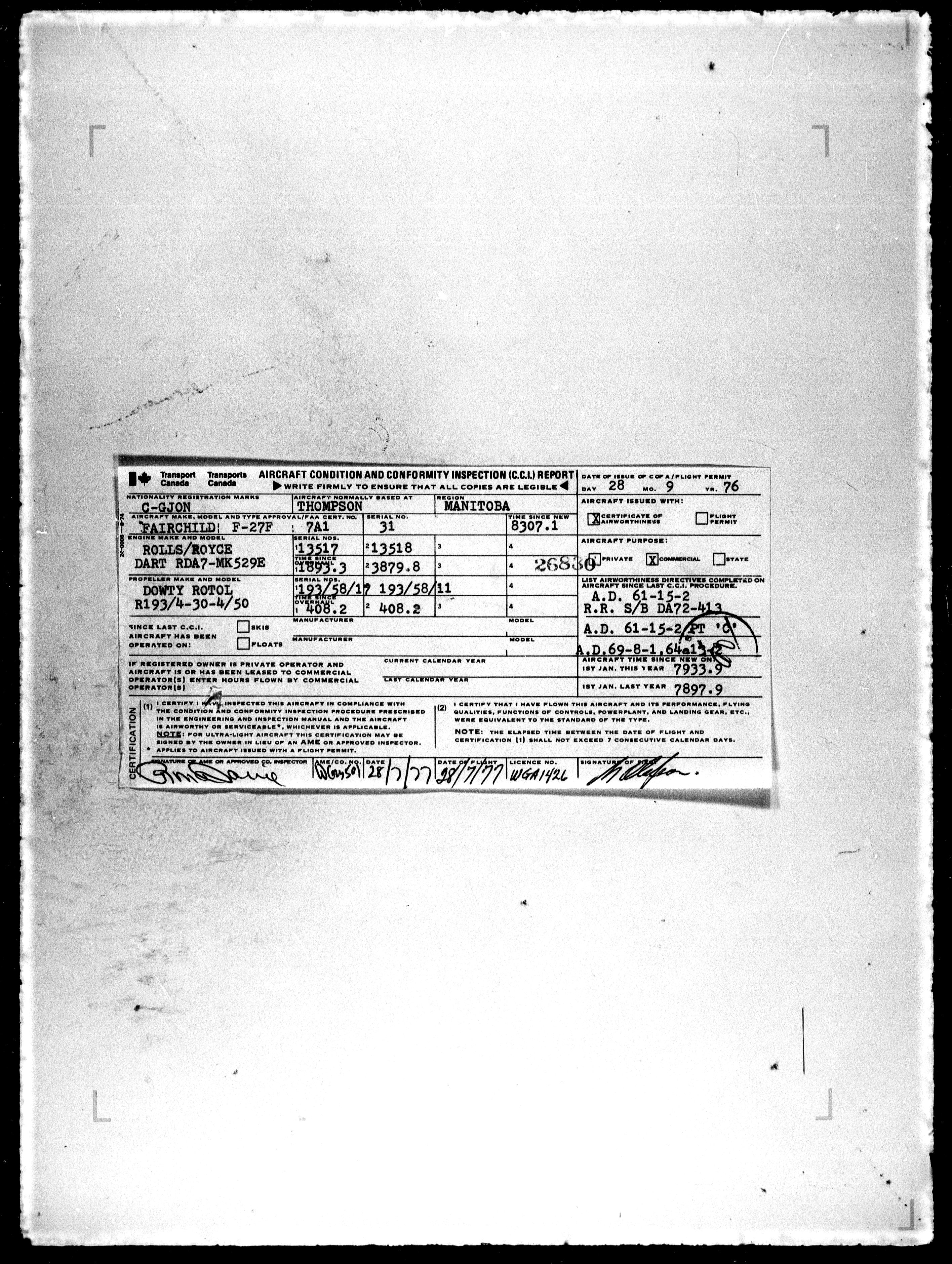 Department of Transport : Civil aircraft registration, inspection and operation files, block 5008, 1920-1986 - 7873