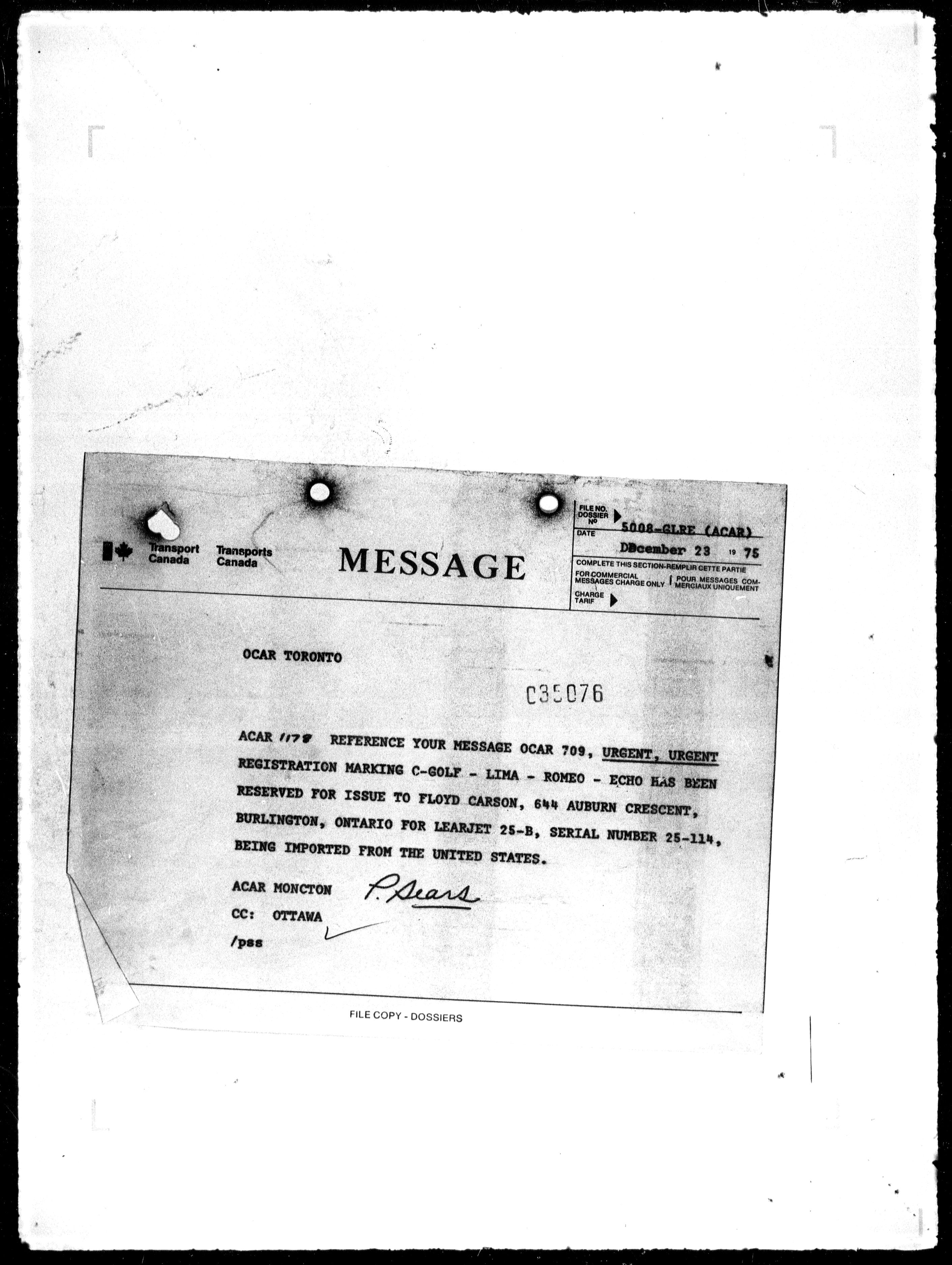 Department of Transport : Civil aircraft registration, inspection and operation files, block 5008, 1920-1986 - 7875