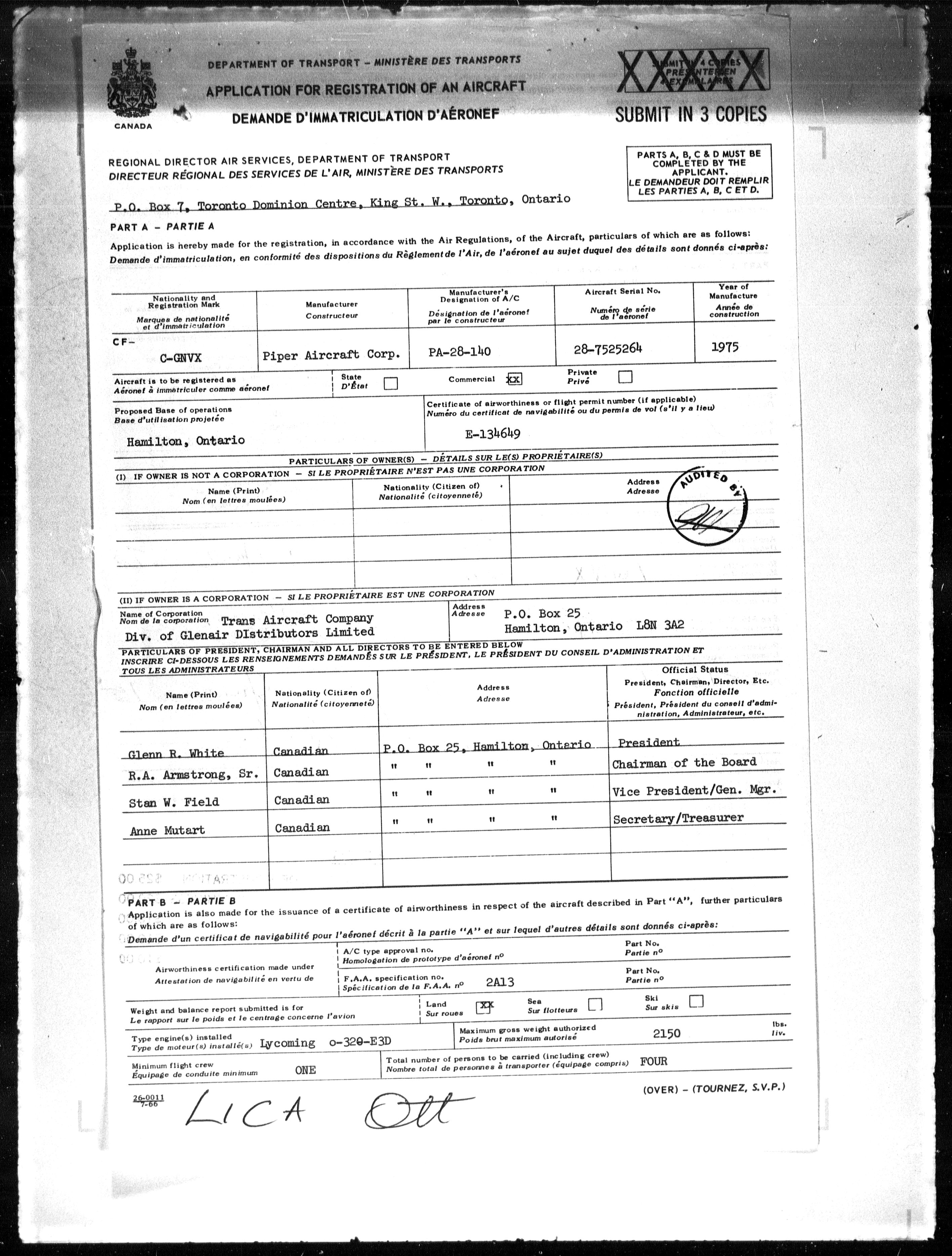 Department of Transport : Civil aircraft registration, inspection and operation files, block 5008, 1920-1986 - 7876