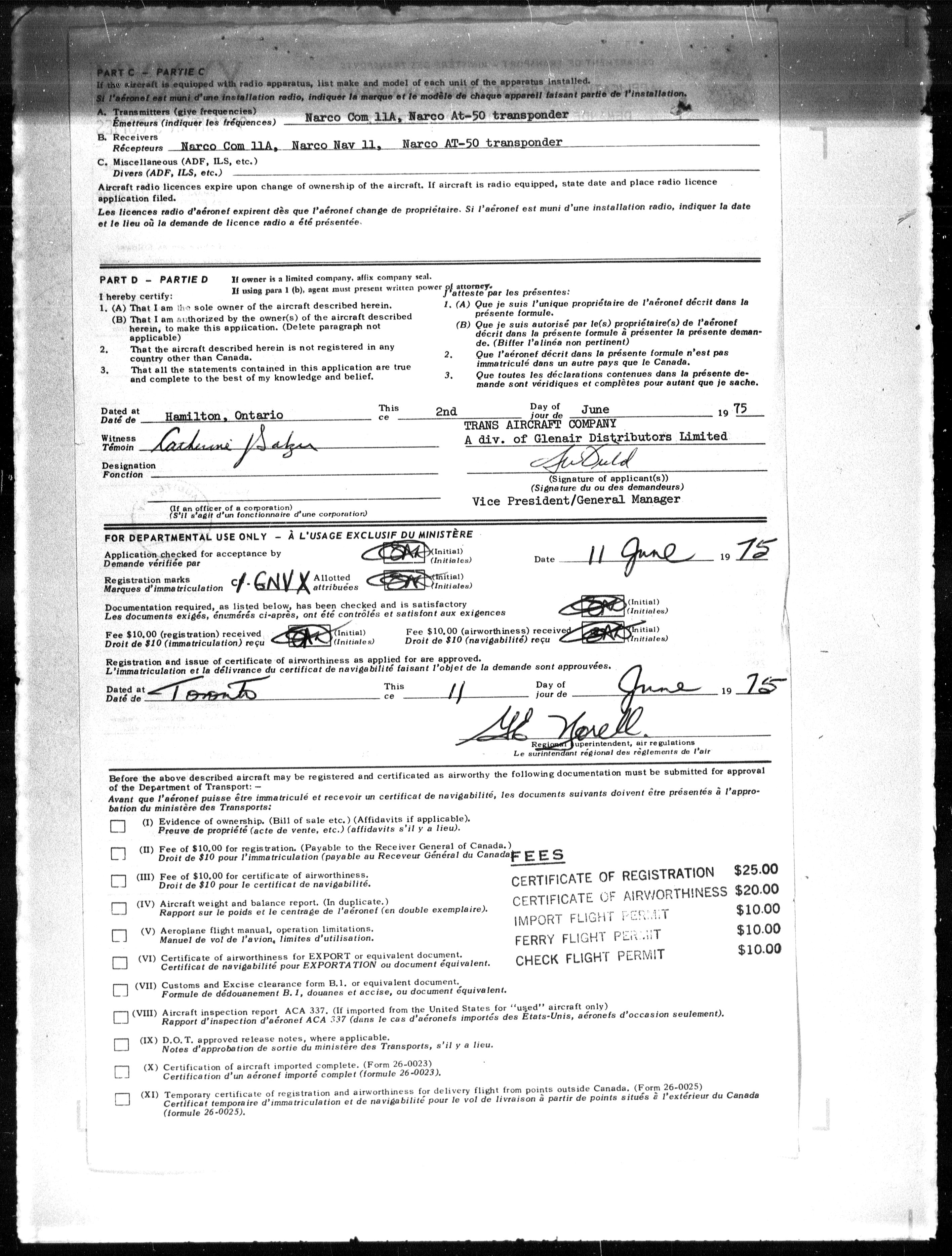 Department of Transport : Civil aircraft registration, inspection and operation files, block 5008, 1920-1986 - 7876