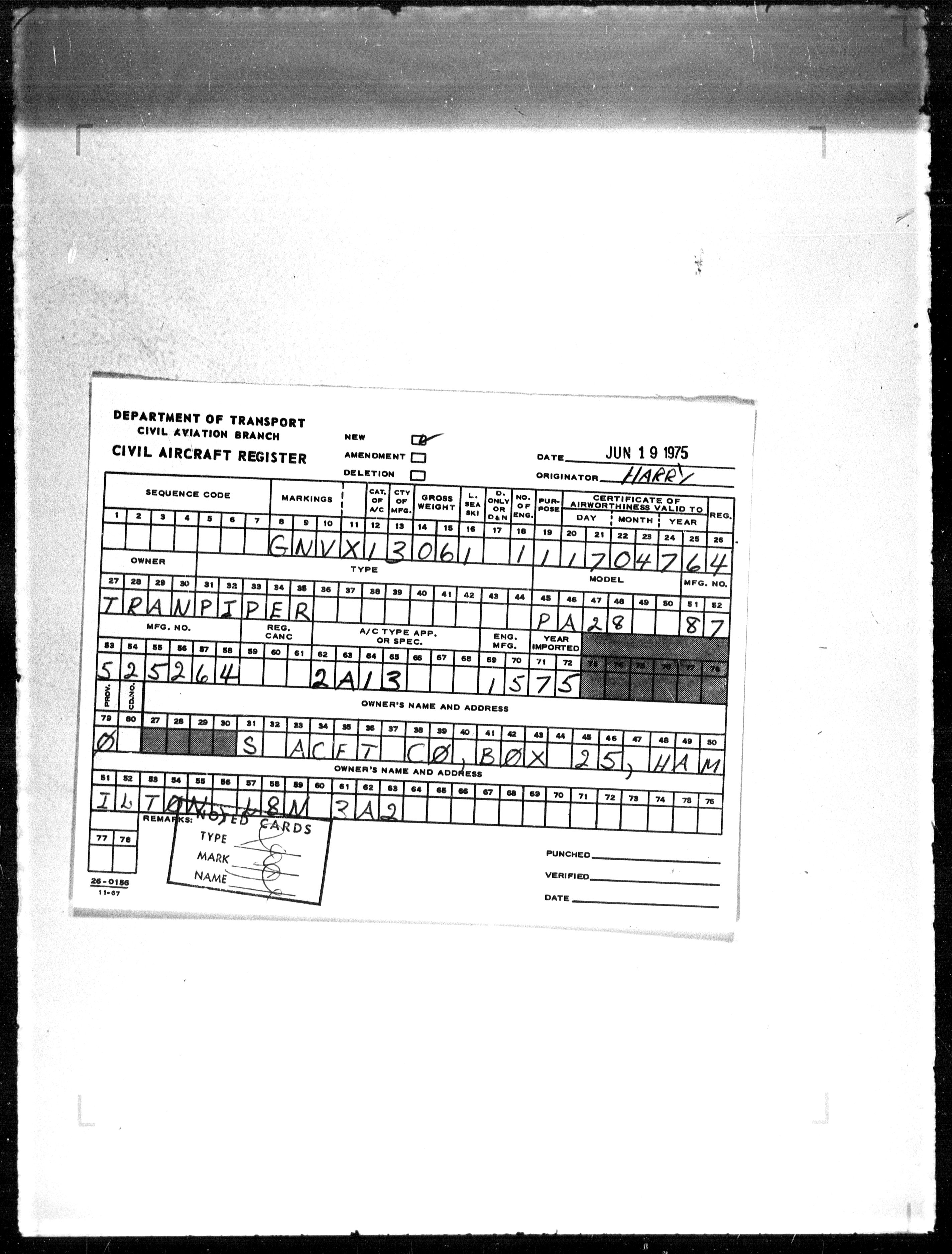 Department of Transport : Civil aircraft registration, inspection and operation files, block 5008, 1920-1986 - 7876