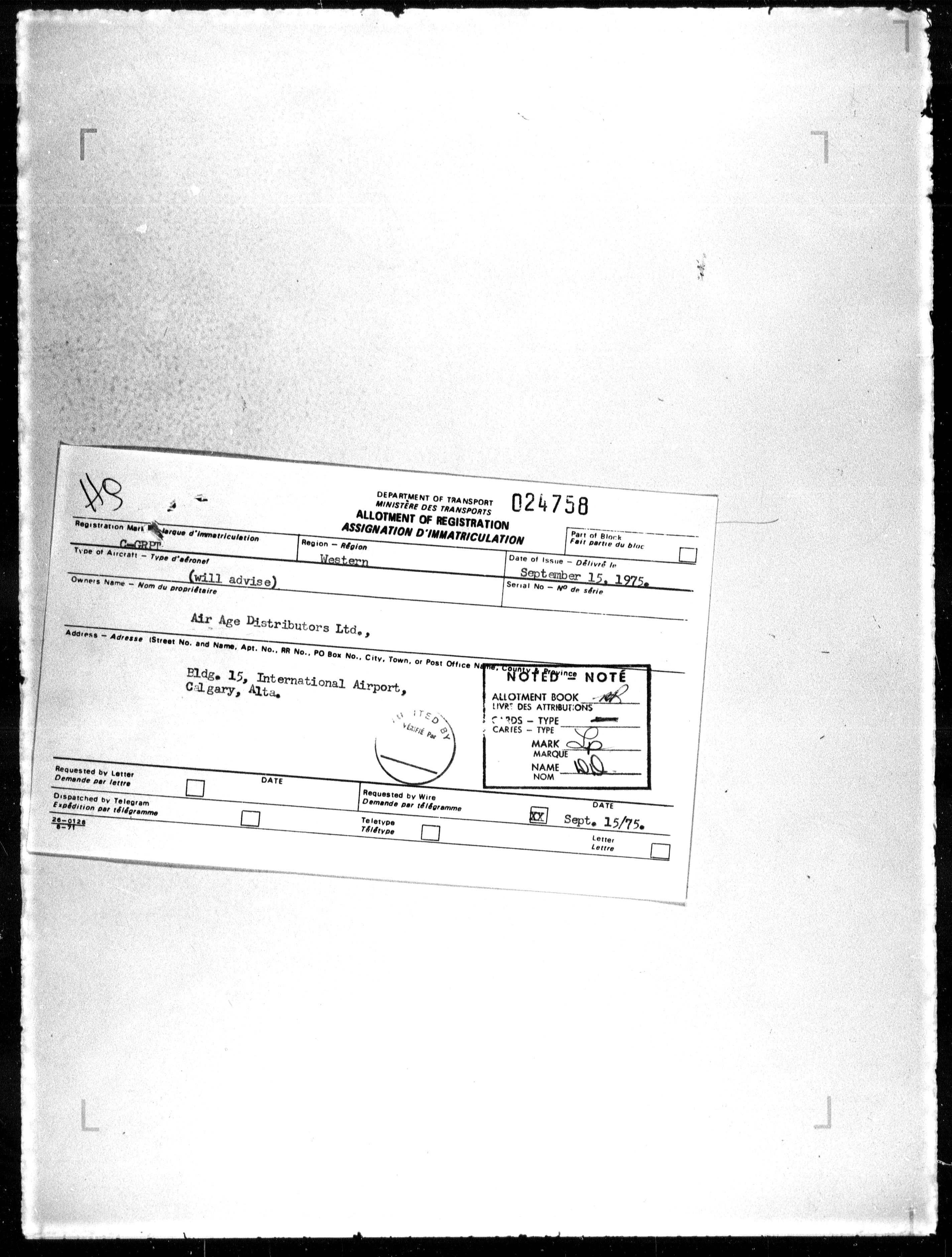 Department of Transport : Civil aircraft registration, inspection and operation files, block 5008, 1920-1986 - 7880