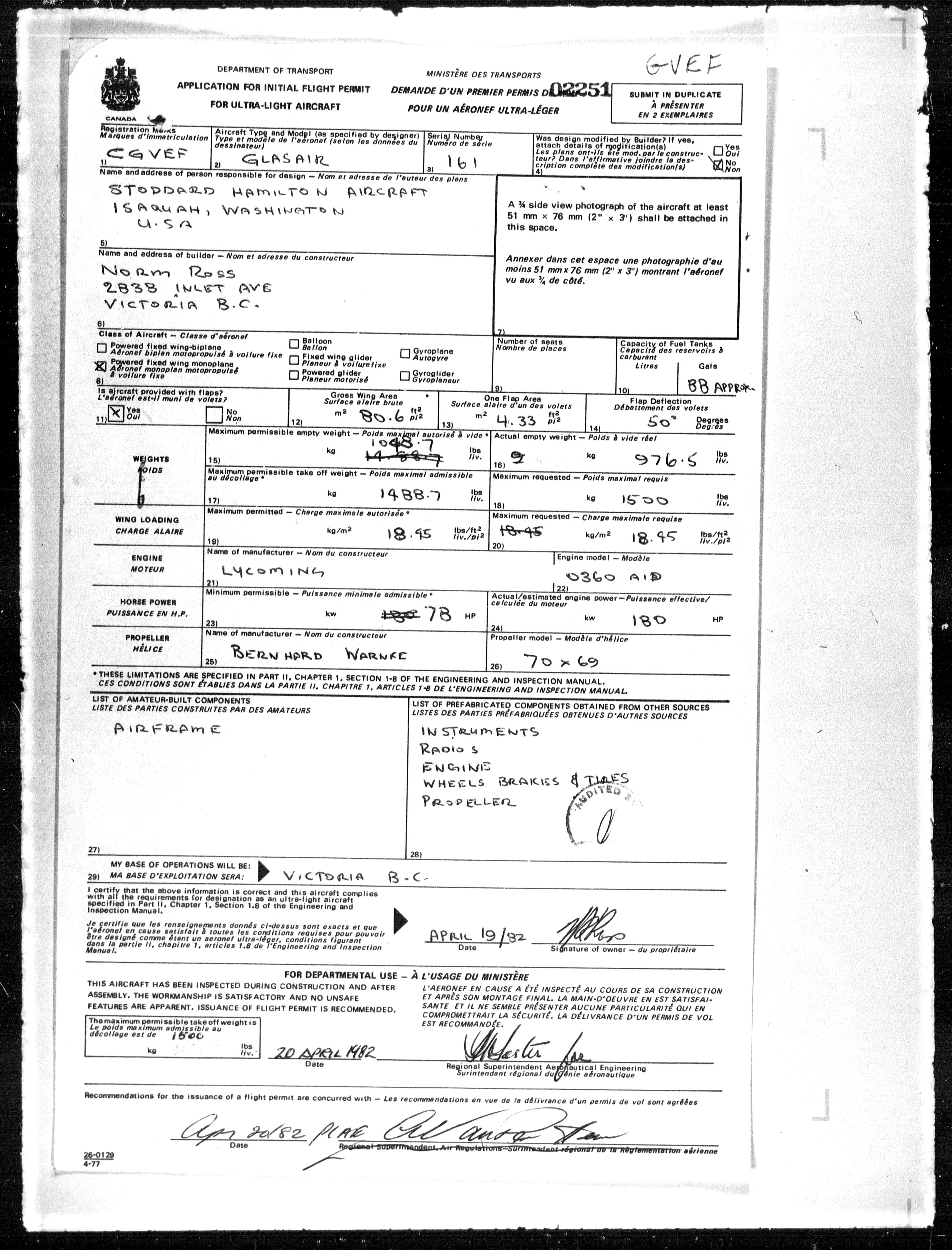 Department of Transport : Civil aircraft registration, inspection and operation files, block 5008, 1920-1986 - 7883