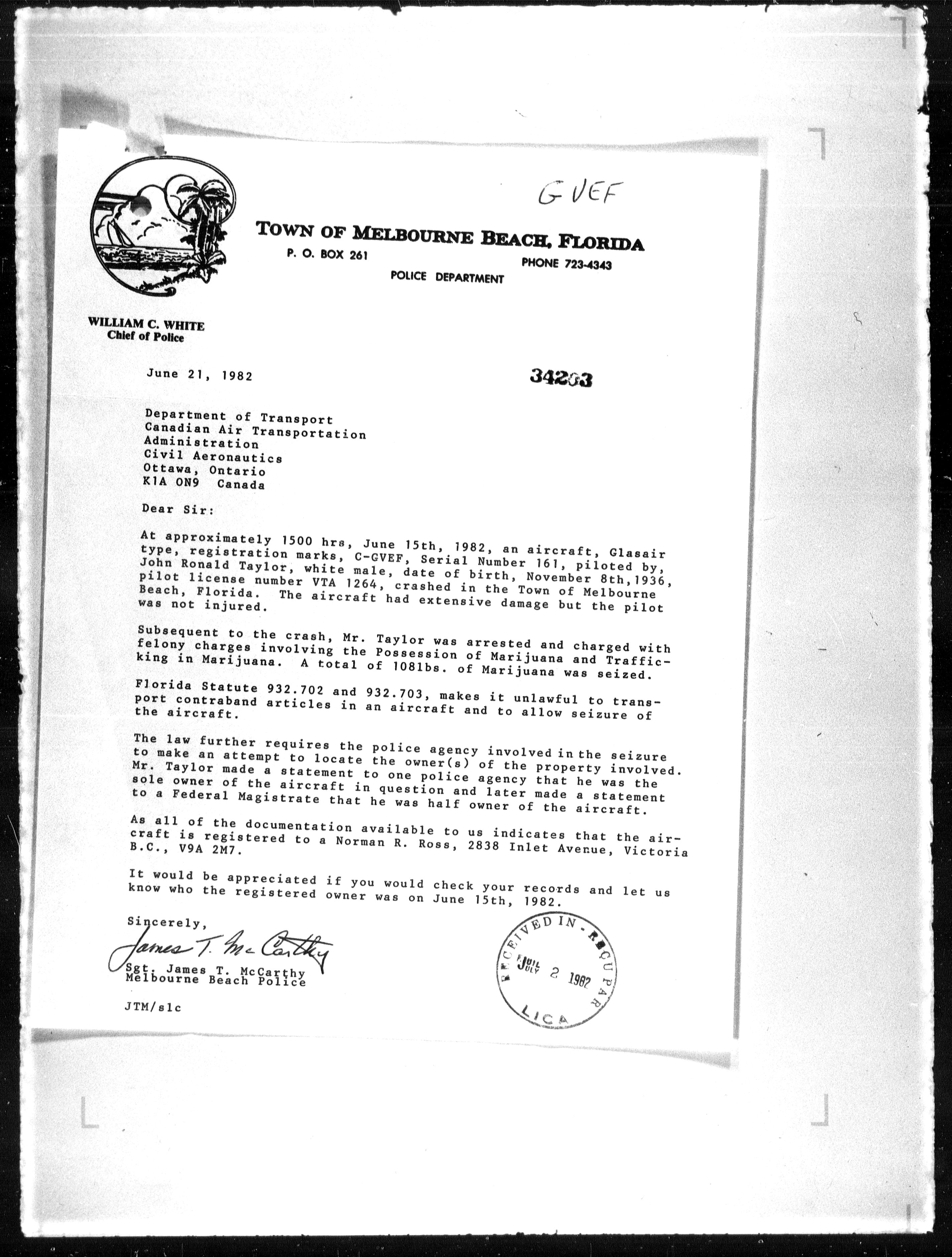 Department of Transport : Civil aircraft registration, inspection and operation files, block 5008, 1920-1986 - 7883