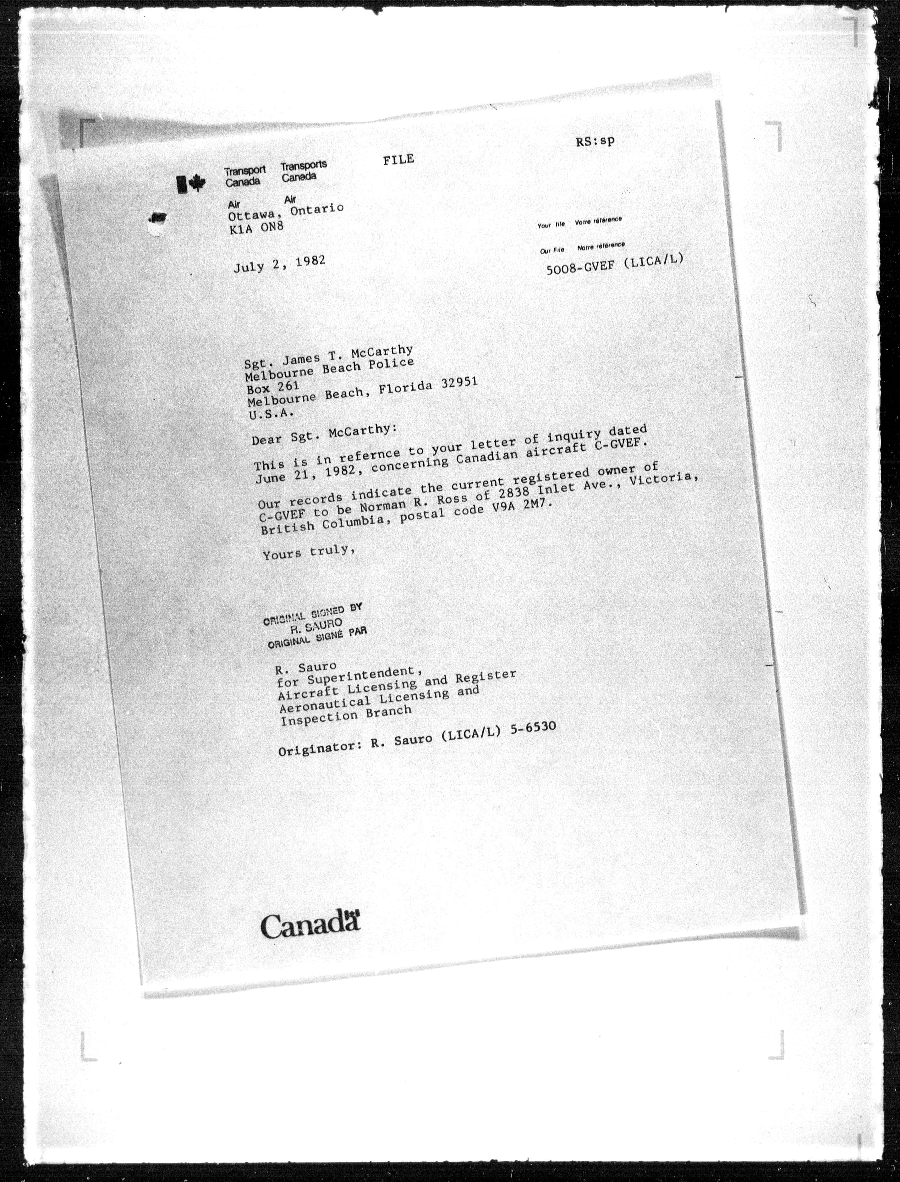 Department of Transport : Civil aircraft registration, inspection and operation files, block 5008, 1920-1986 - 7883