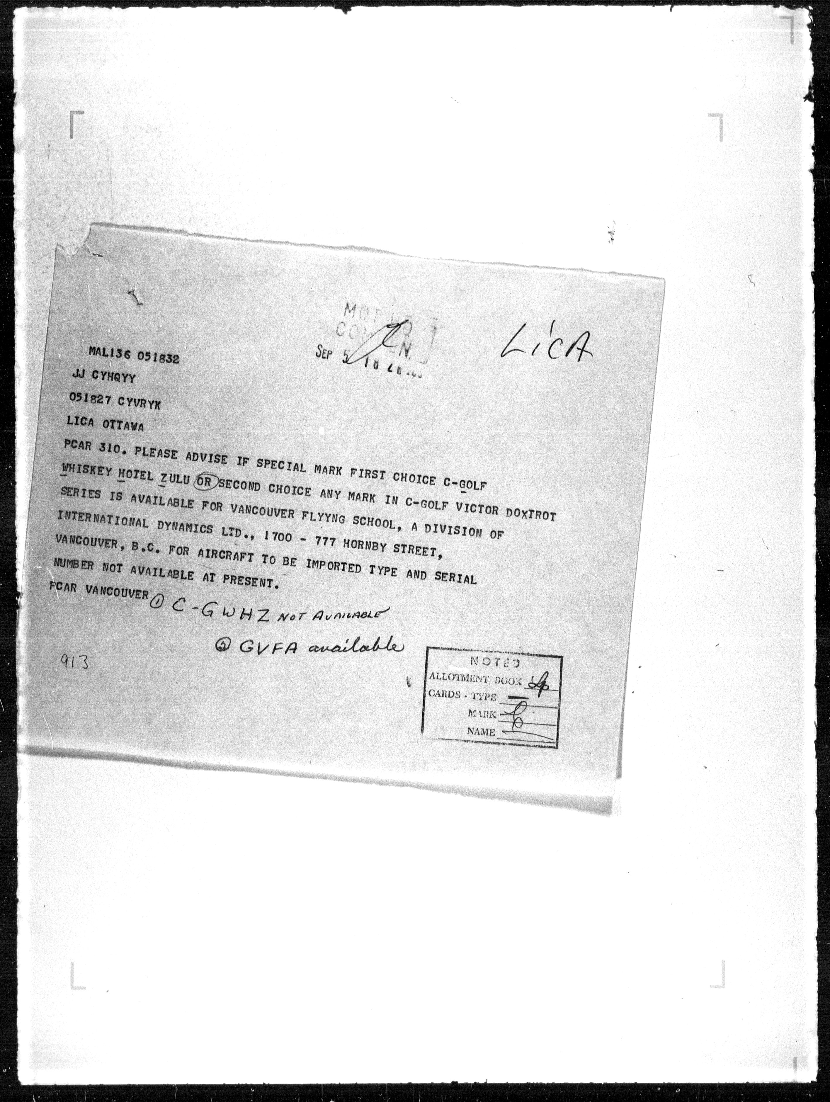 Department of Transport : Civil aircraft registration, inspection and operation files, block 5008, 1920-1986 - 7883