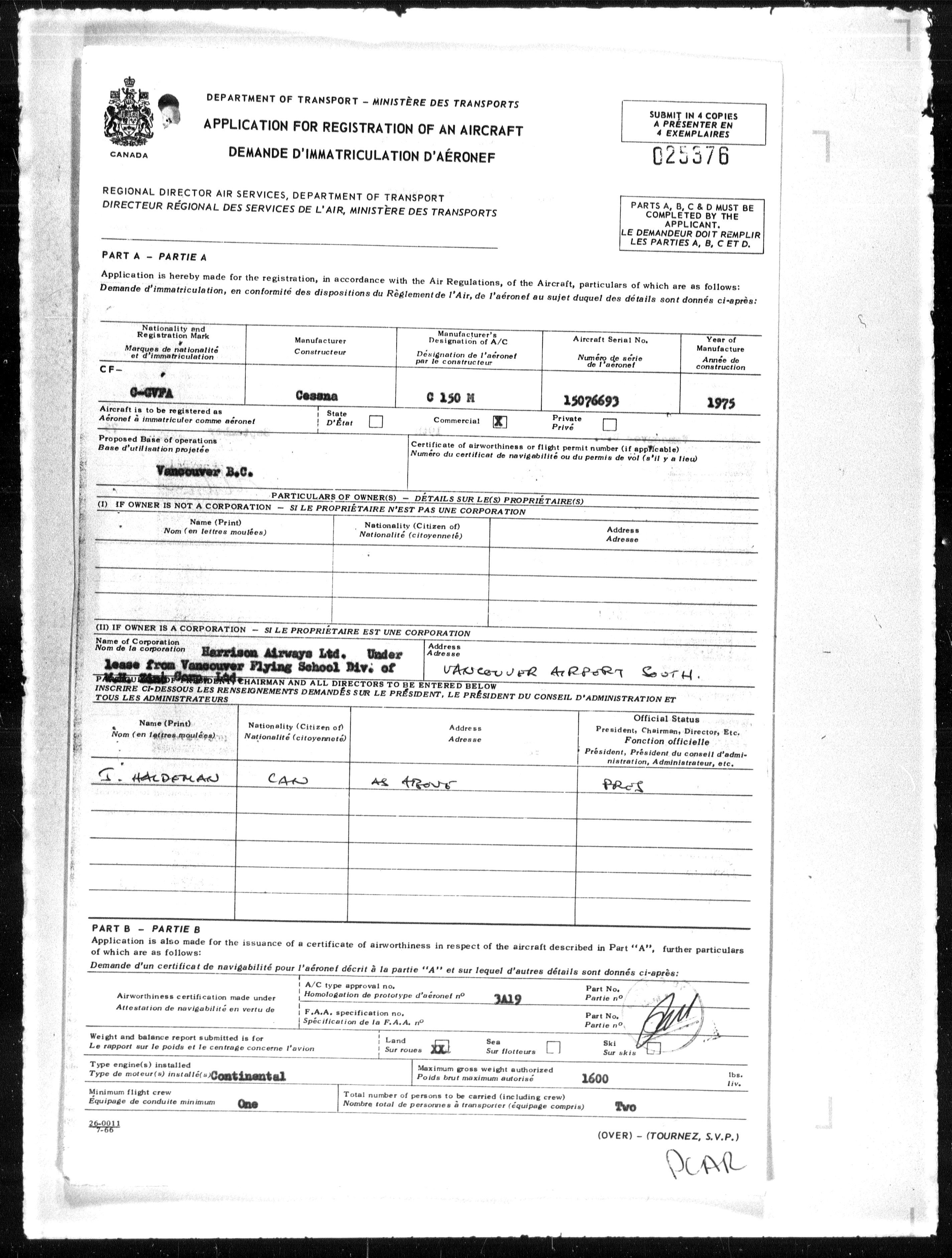 Department of Transport : Civil aircraft registration, inspection and operation files, block 5008, 1920-1986 - 7883