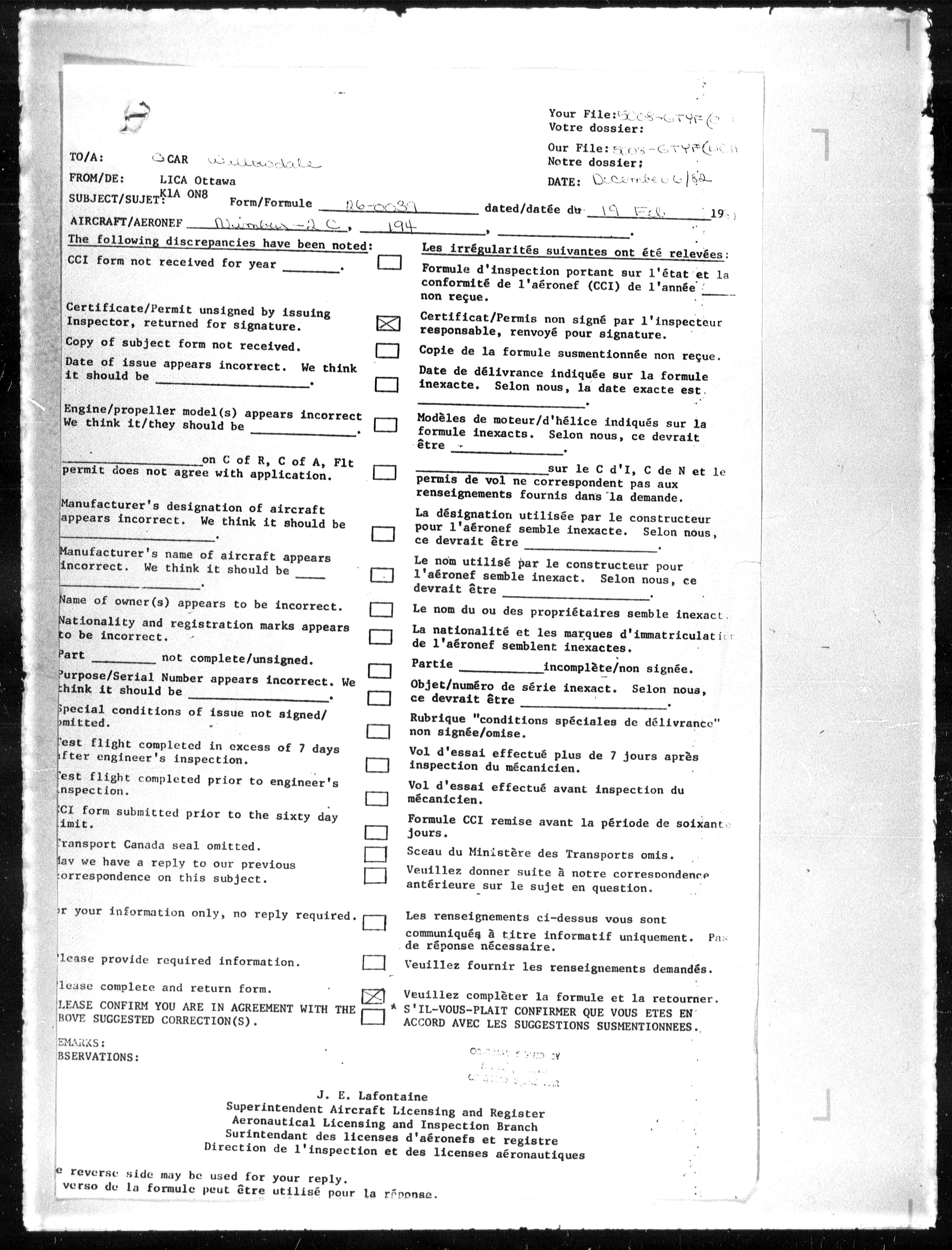 Department of Transport : Civil aircraft registration, inspection and operation files, block 5008, 1920-1986 - 7883