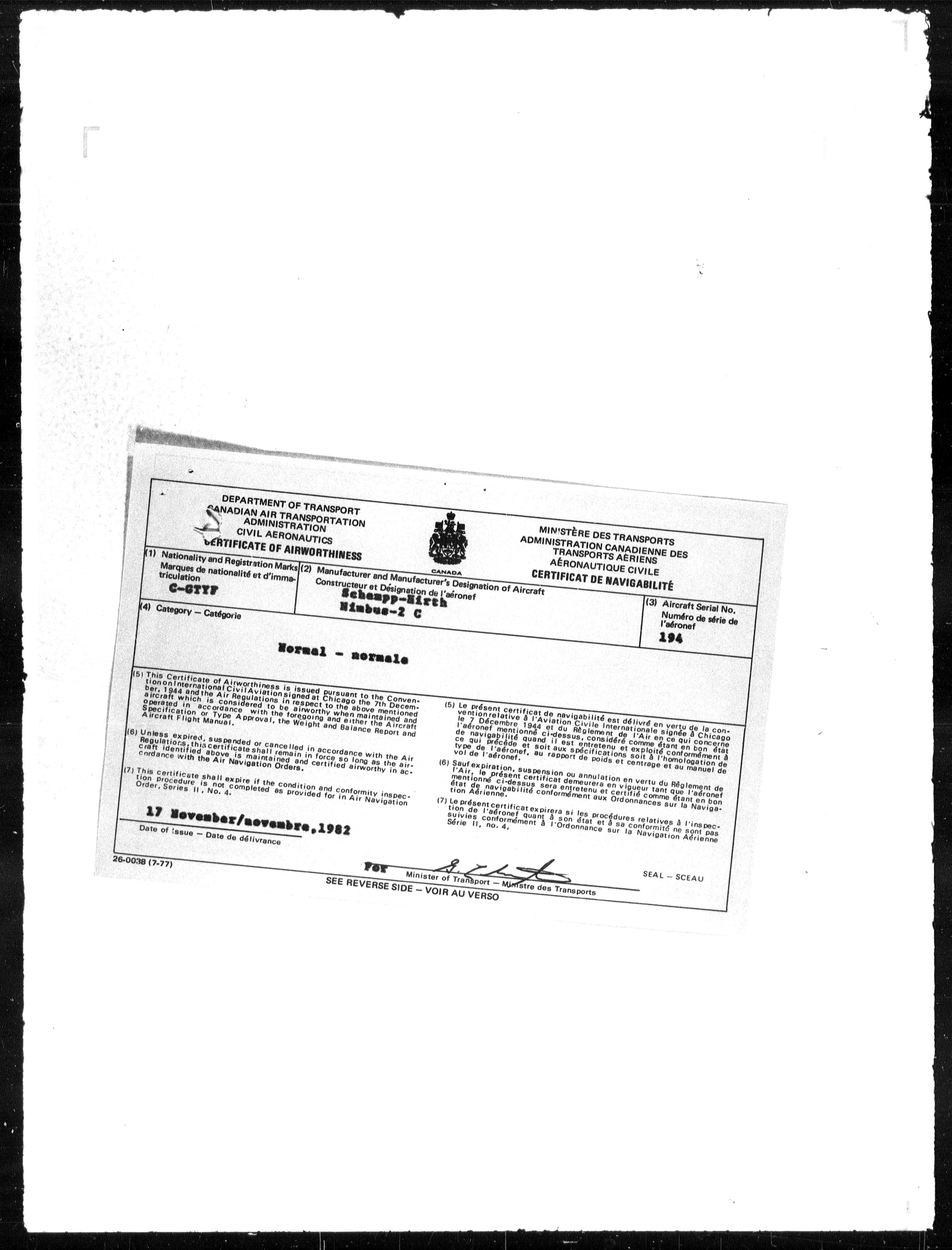 Department of Transport : Civil aircraft registration, inspection and operation files, block 5008, 1920-1986 - 7883