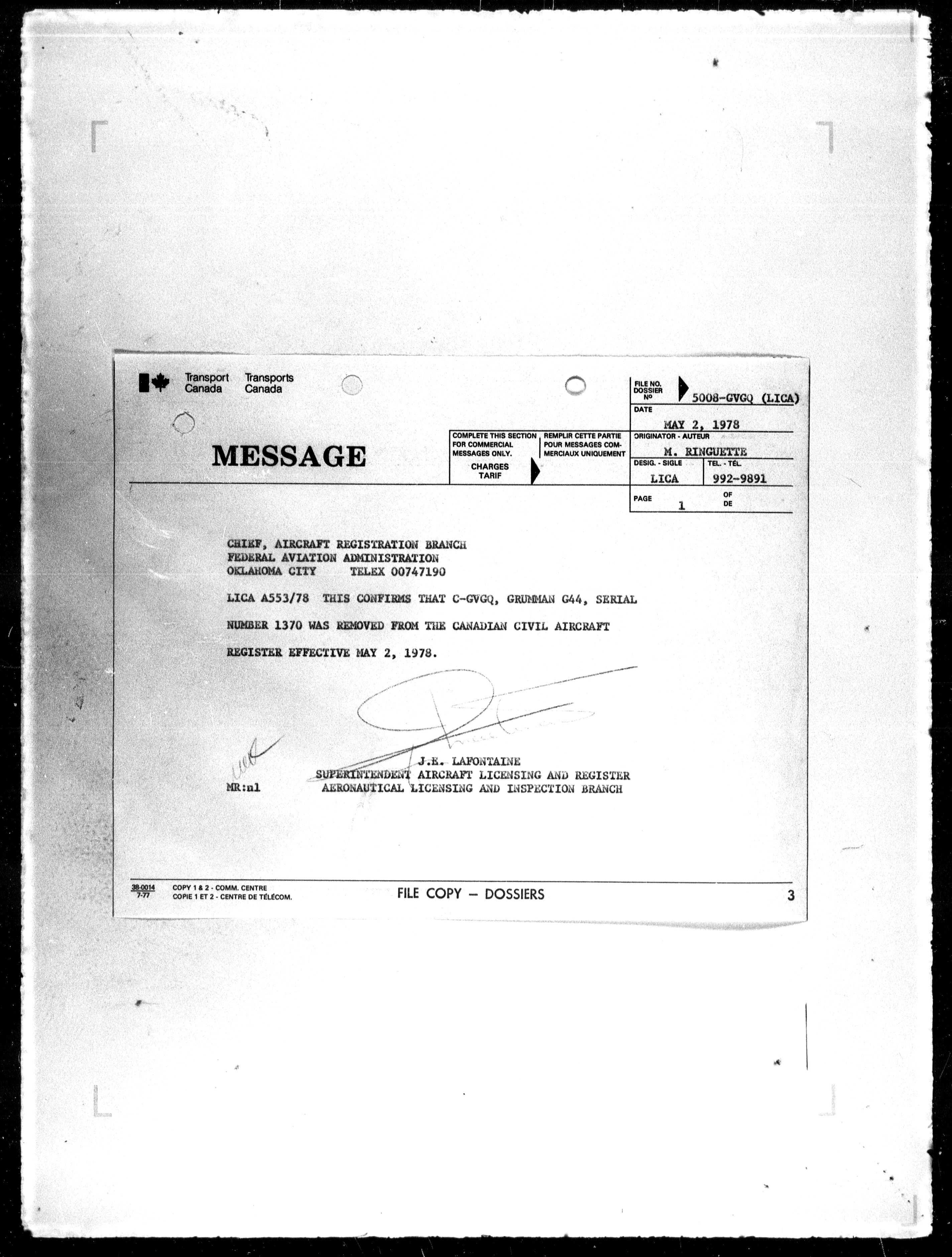 Department of Transport : Civil aircraft registration, inspection and operation files, block 5008, 1920-1986 - 7884