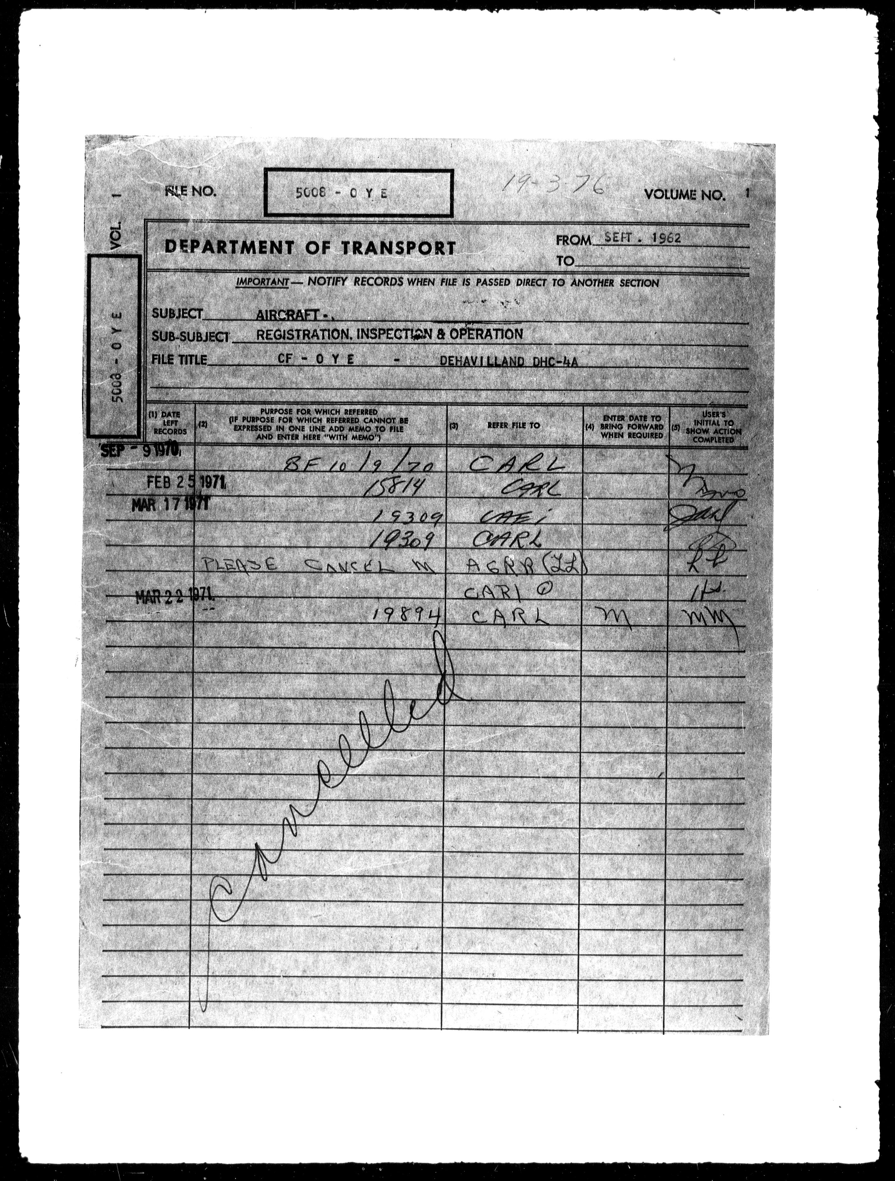 Department of Transport : Civil aircraft registration, inspection and operation files, block 5008, 1920-1986 - 7884