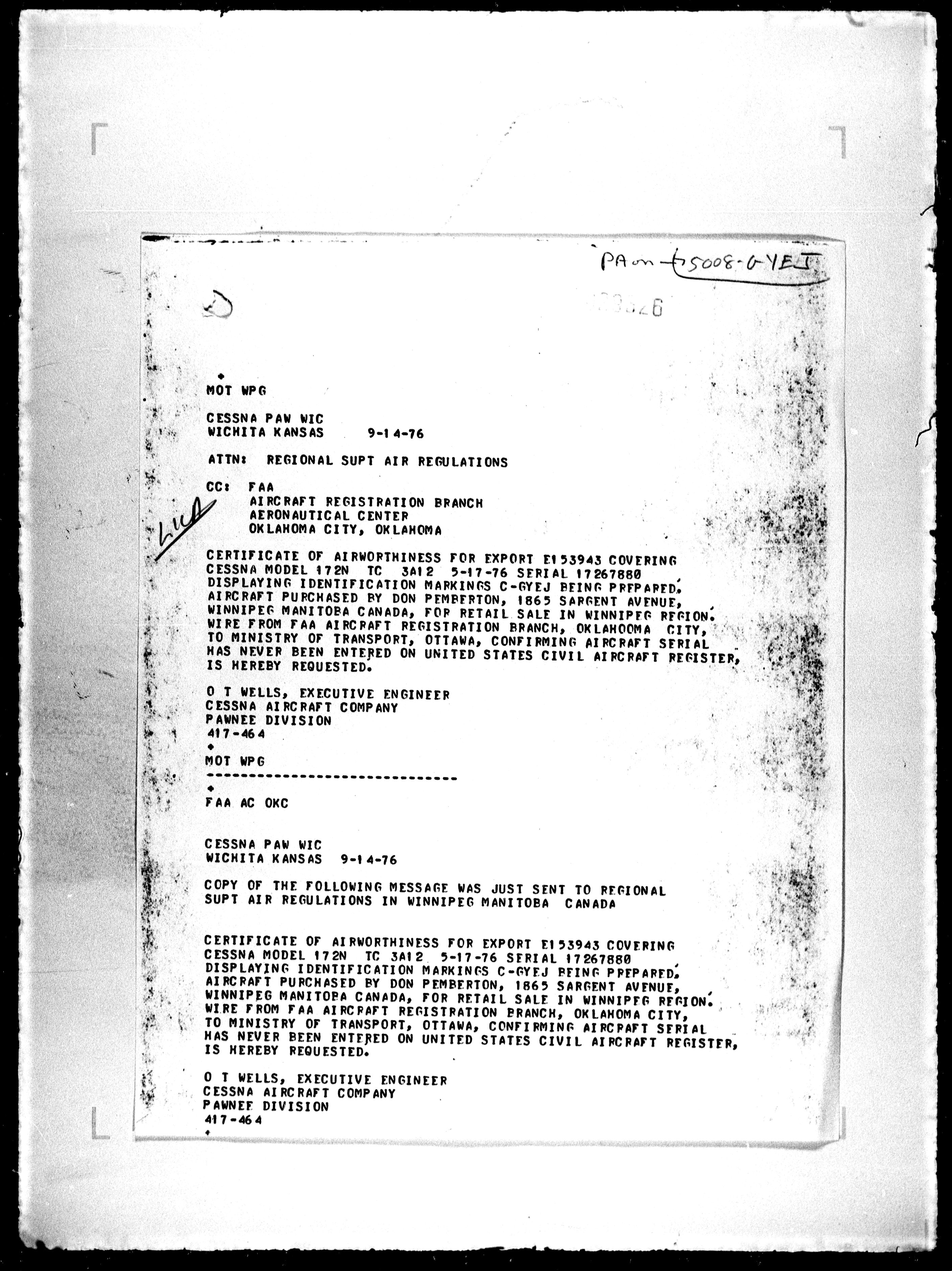 Department of Transport : Civil aircraft registration, inspection and operation files, block 5008, 1920-1986 - 7886