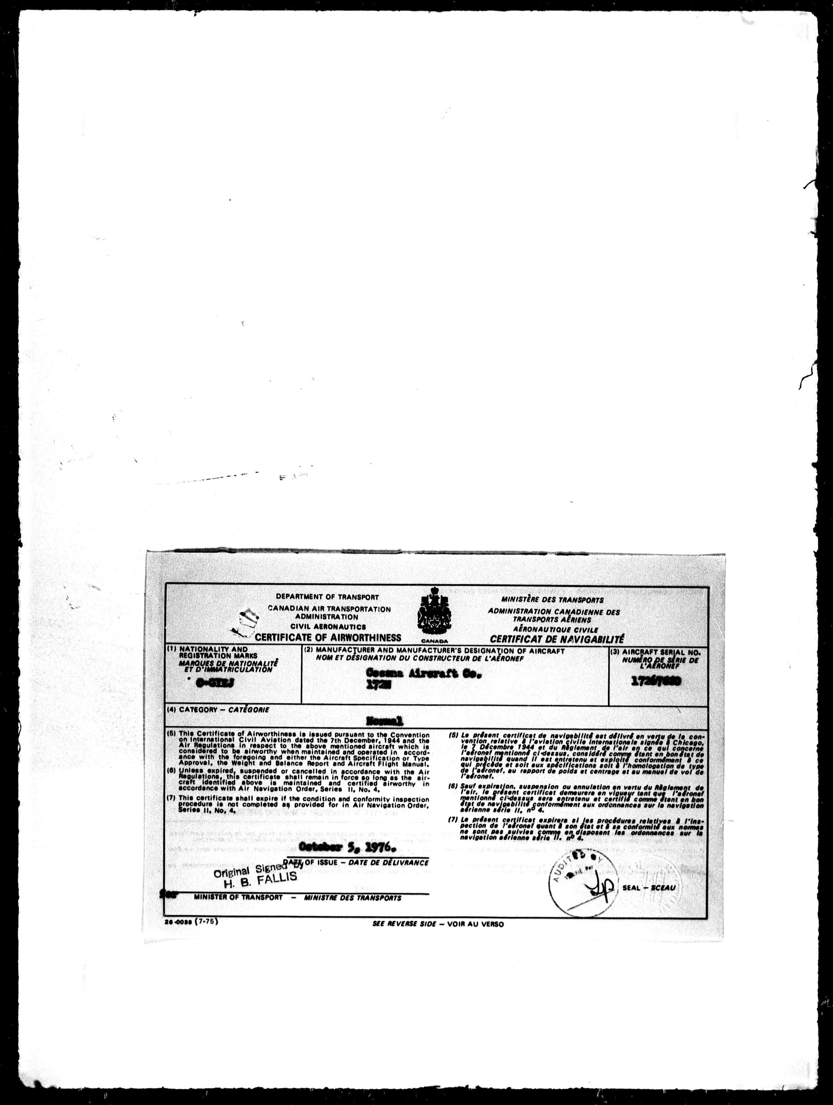 Department of Transport : Civil aircraft registration, inspection and operation files, block 5008, 1920-1986 - 7886