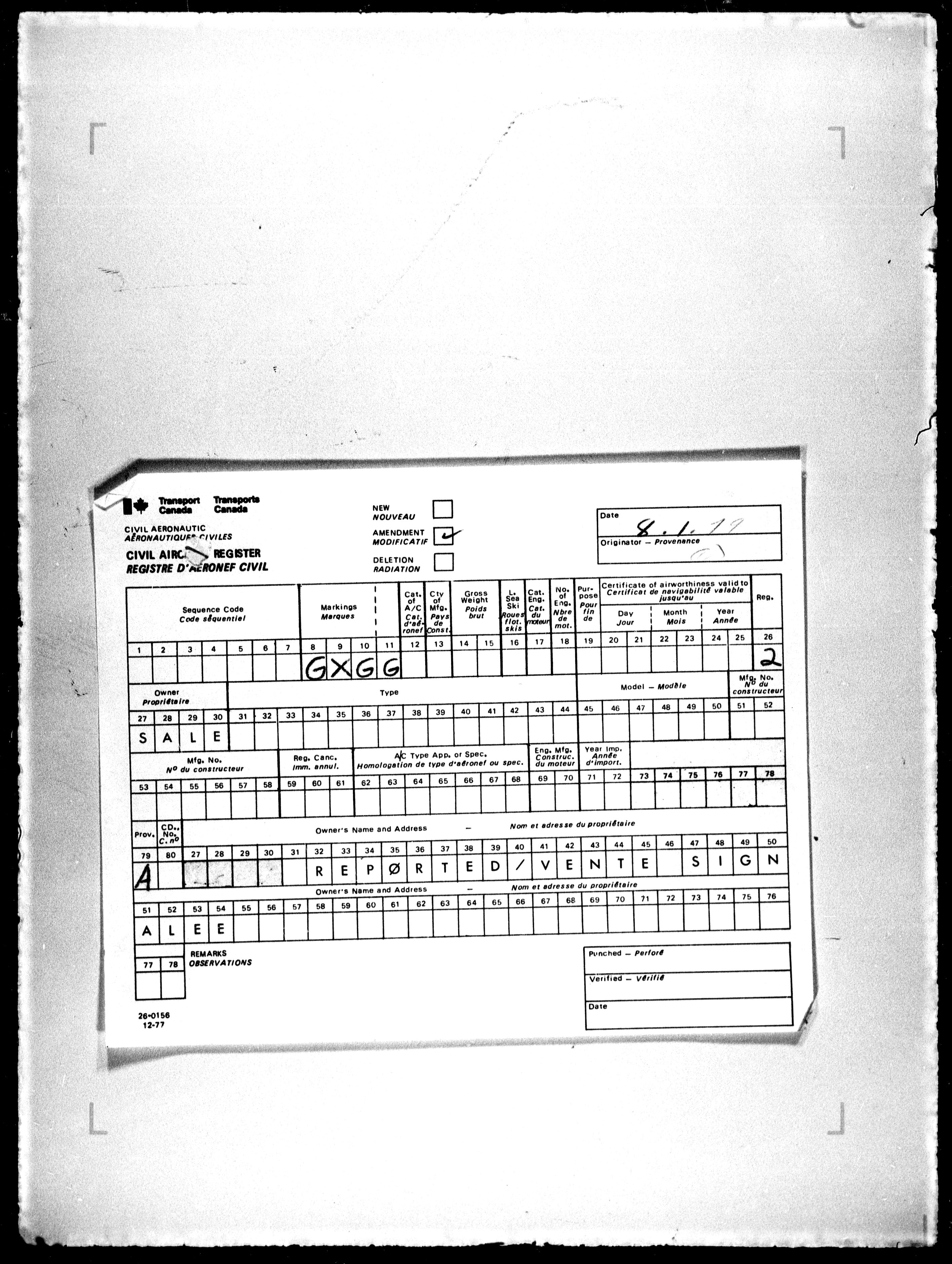 Department of Transport : Civil aircraft registration, inspection and operation files, block 5008, 1920-1986 - 7886