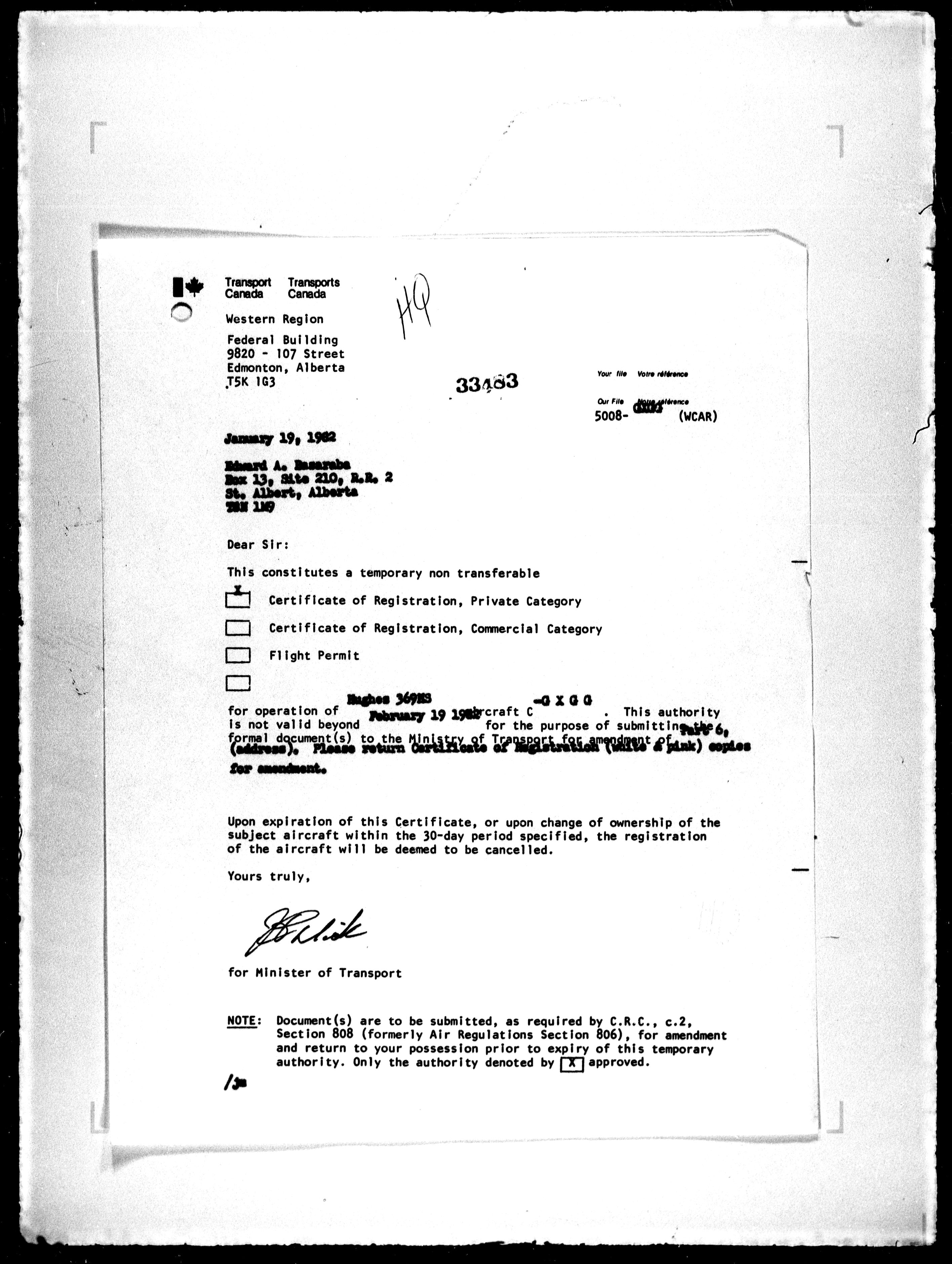 Department of Transport : Civil aircraft registration, inspection and operation files, block 5008, 1920-1986 - 7886